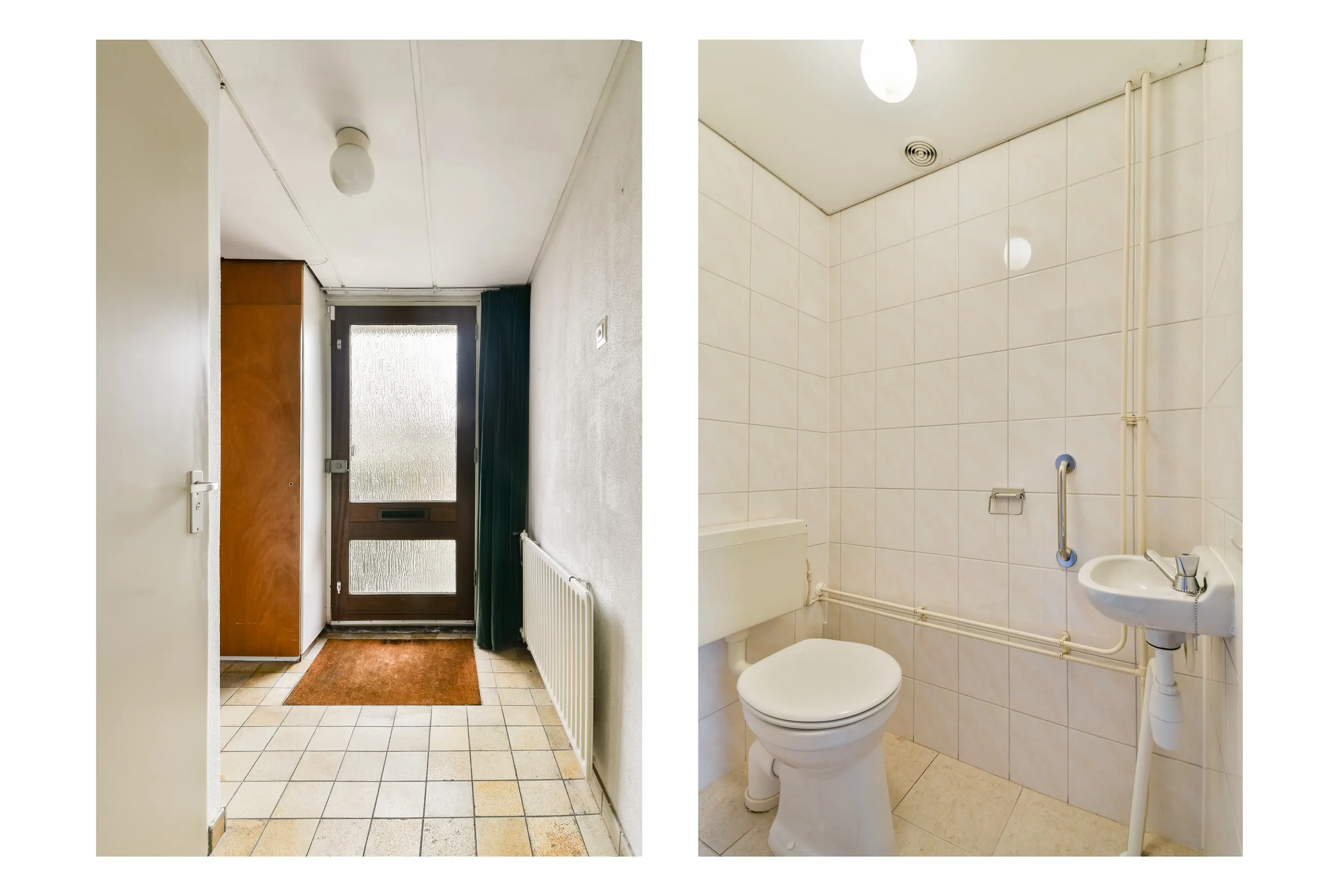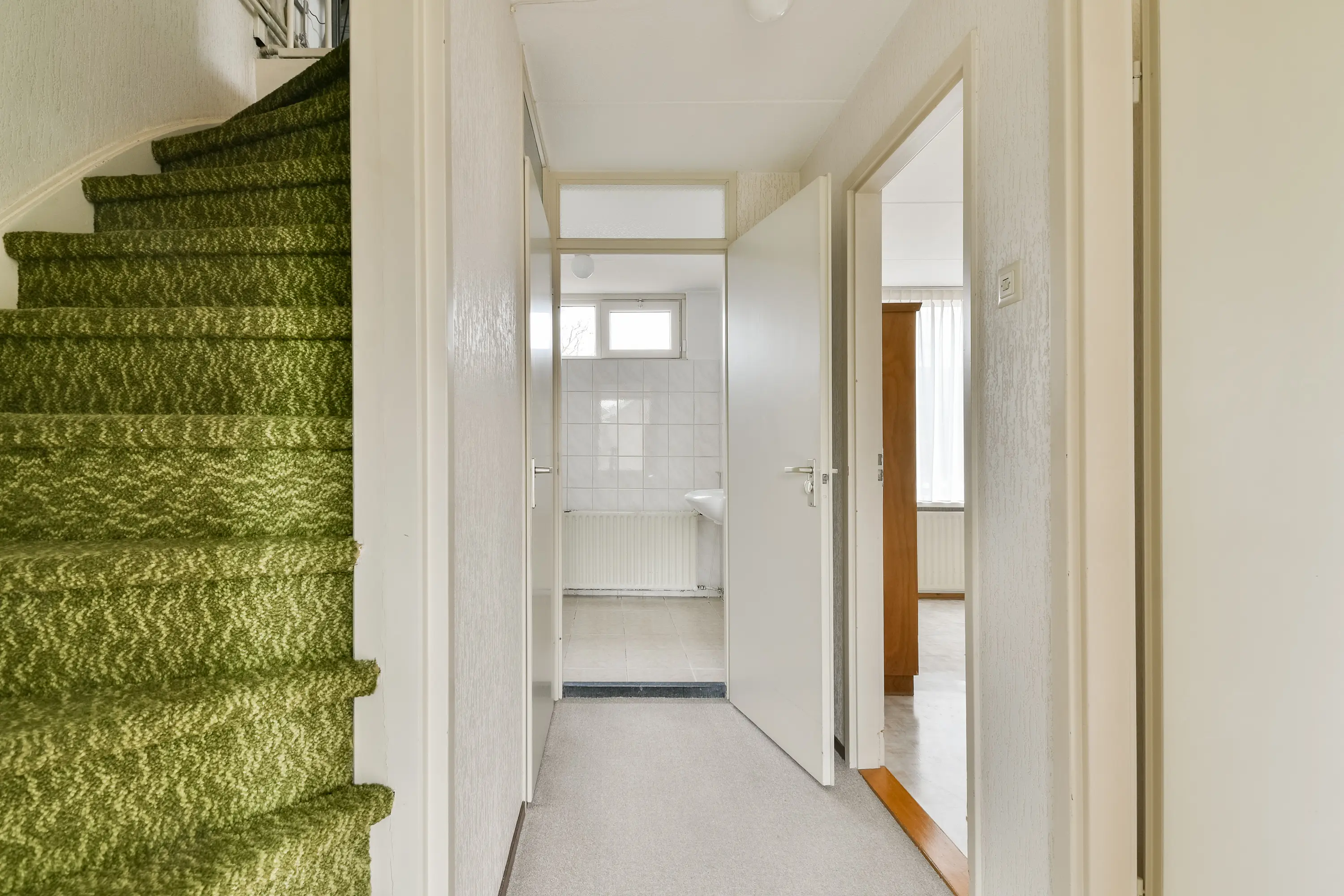 Via de entree komt u in de hal met meterkast en een staand toilet met fonteintje.