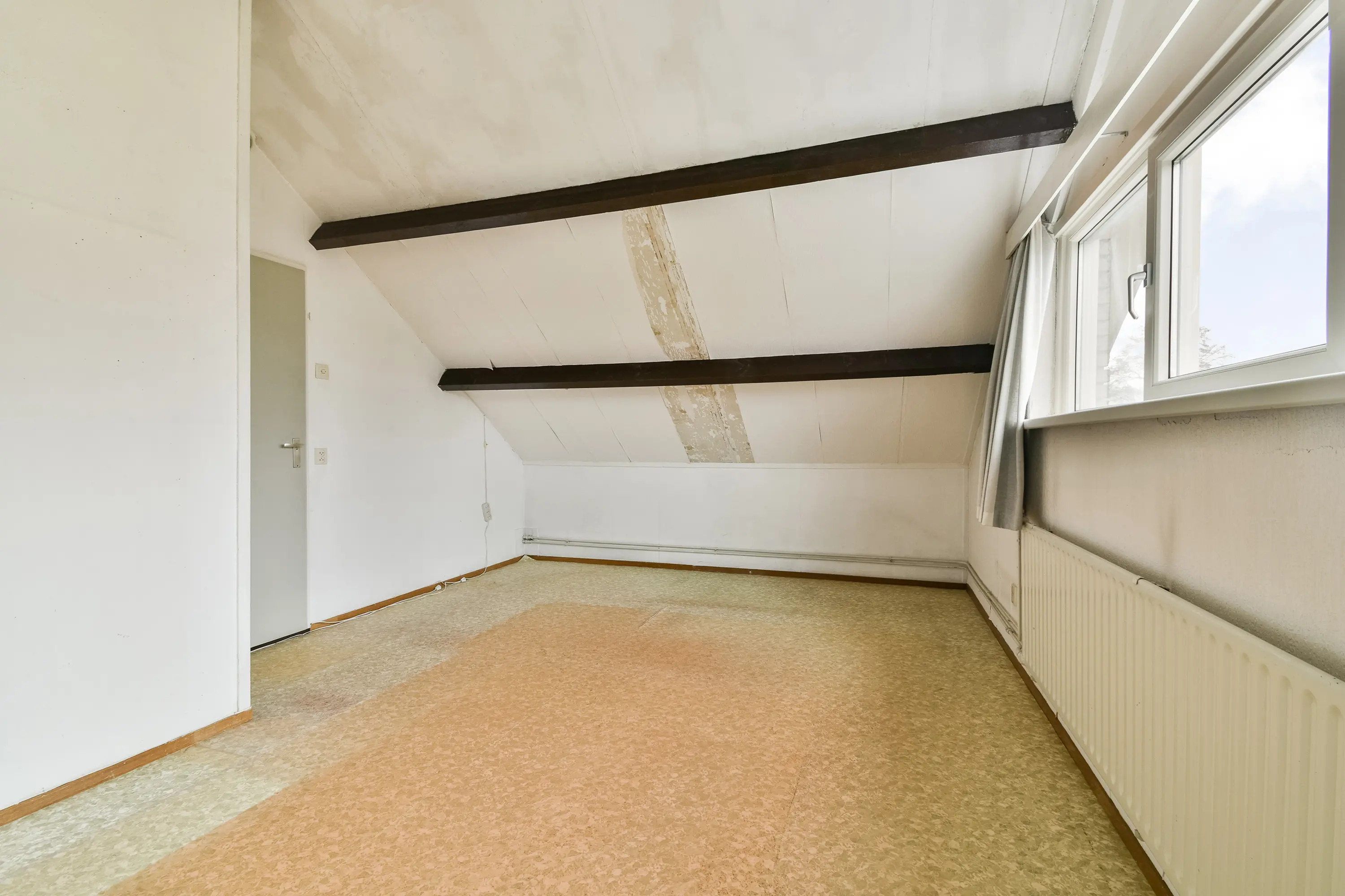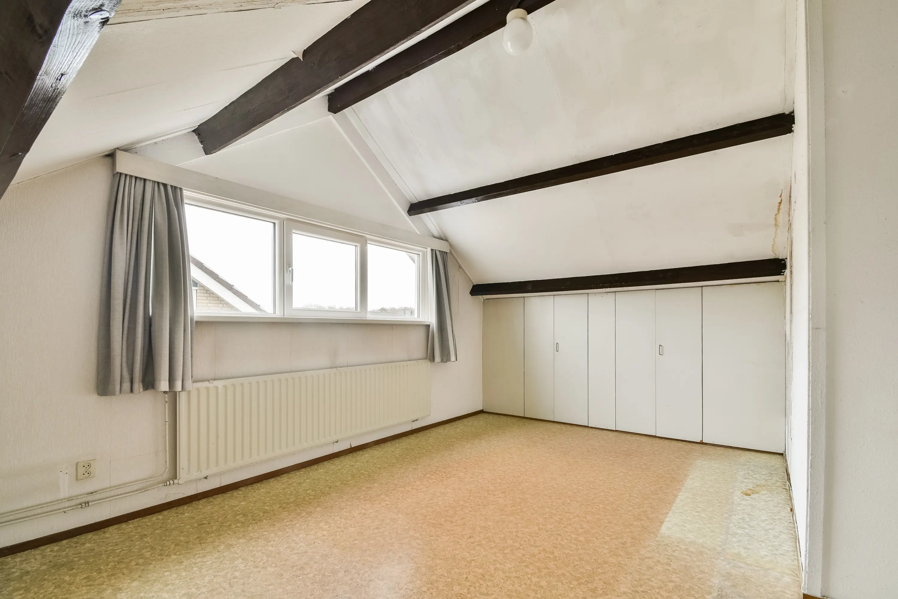 Dankzij de dakkapel en de aanwezige raampartijen is er prettig lichtinval. De vaste trap zorgt ervoor dat deze verdieping volledig in gebruik is als volwaardige woonruimte.
