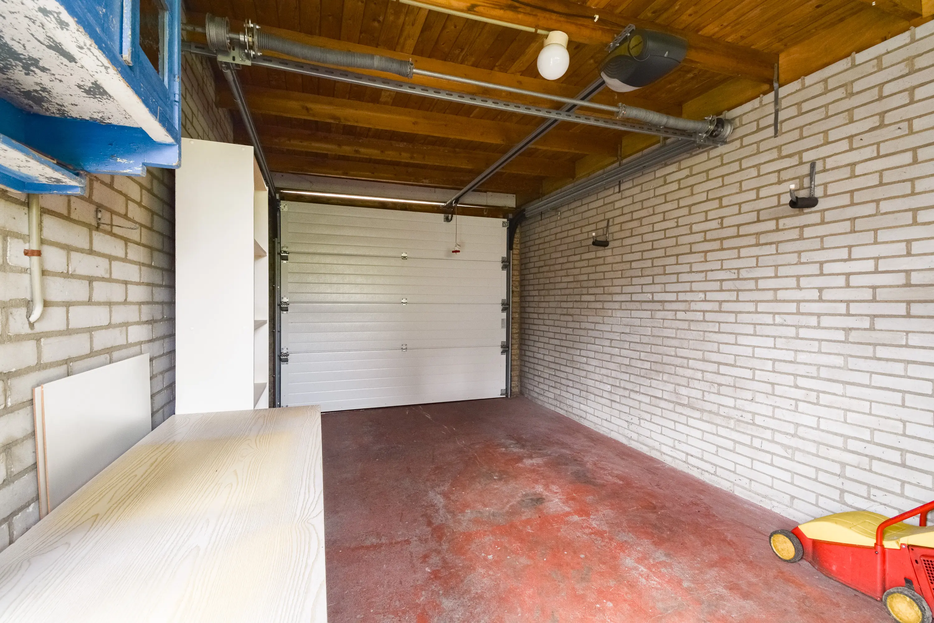 De woning beschikt over een aangebouwde garage (ca. 18,6 m²) met elektrische garagedeur. Ideaal voor hobby, opslag of het stallen van fietsen en motoren.