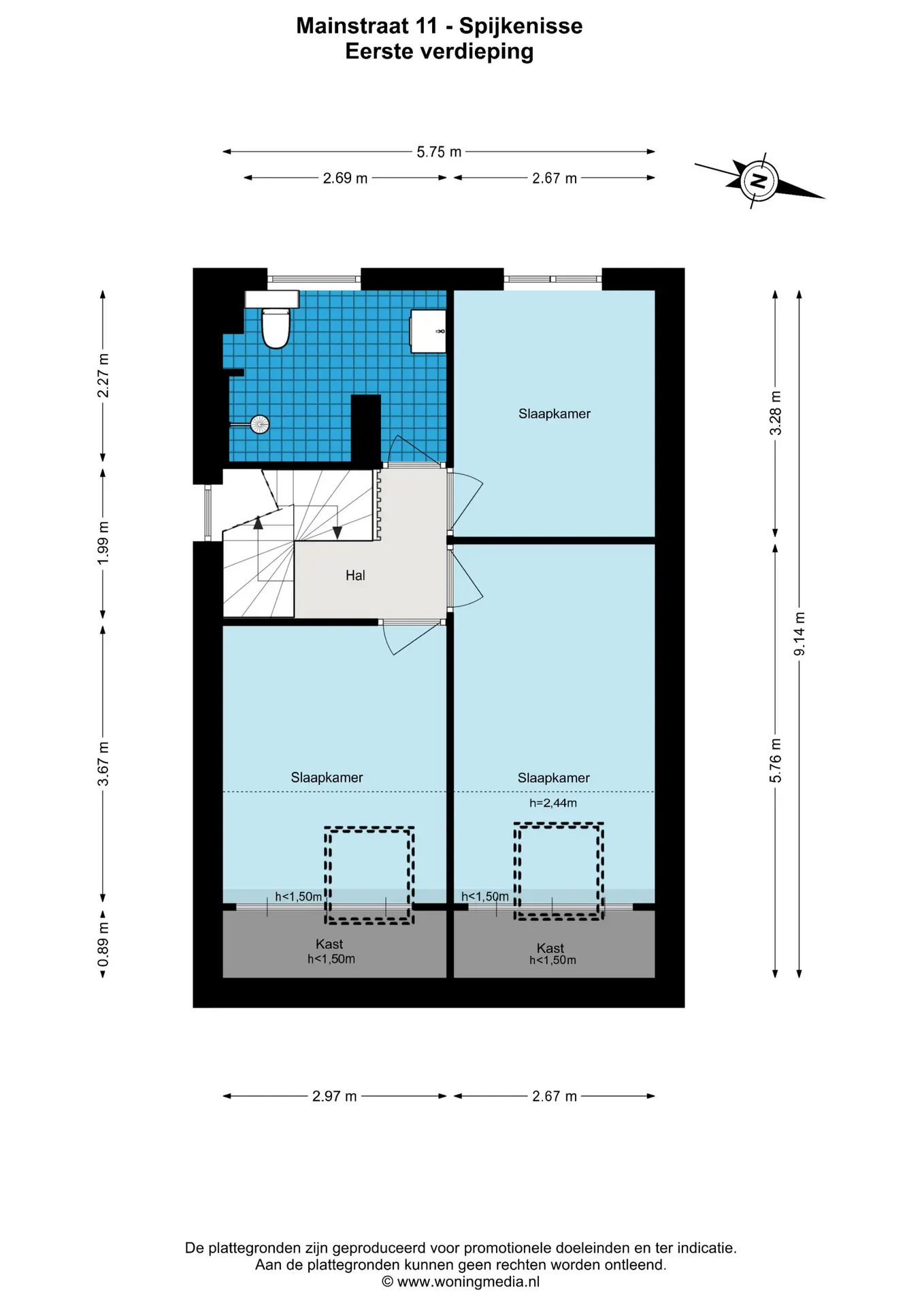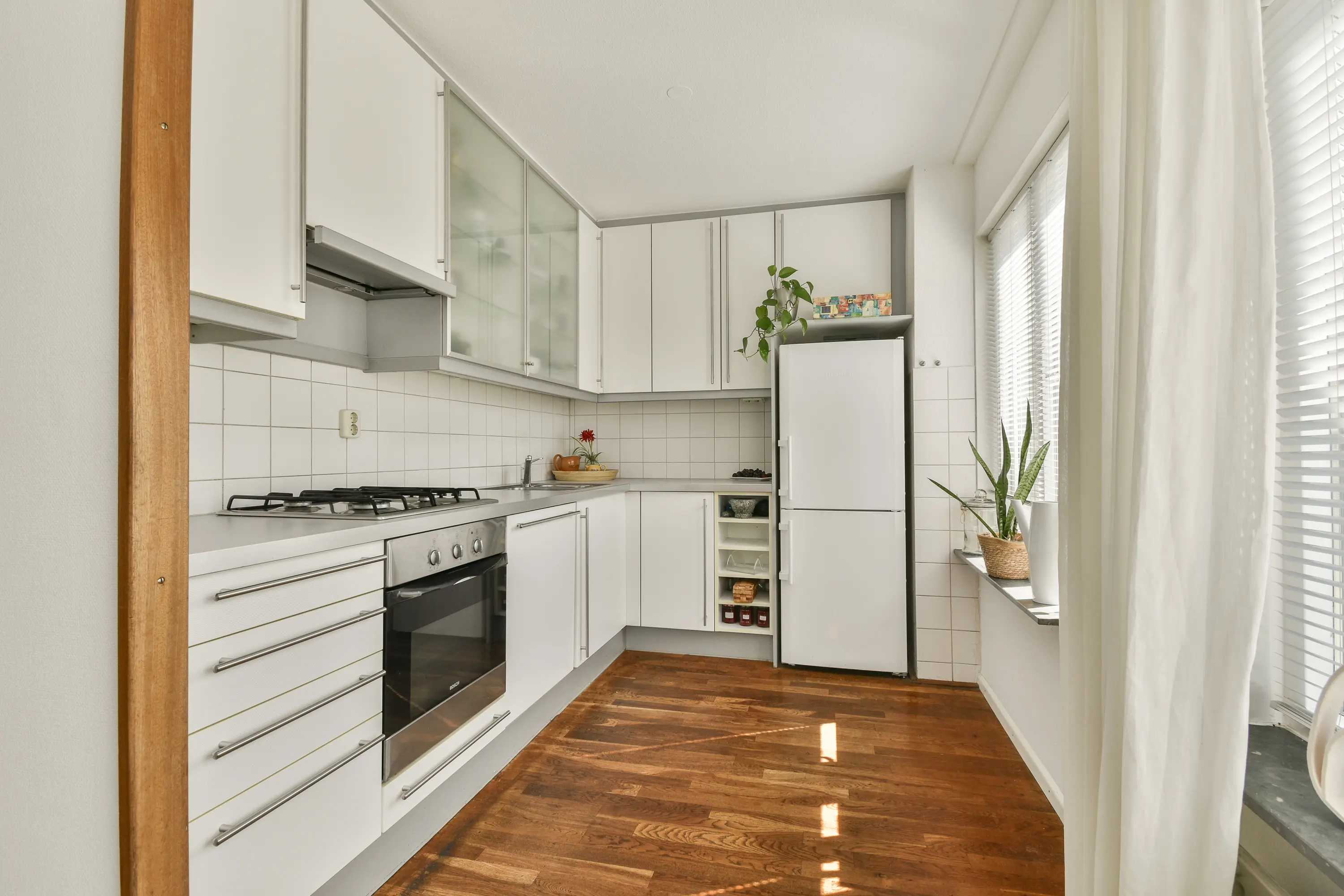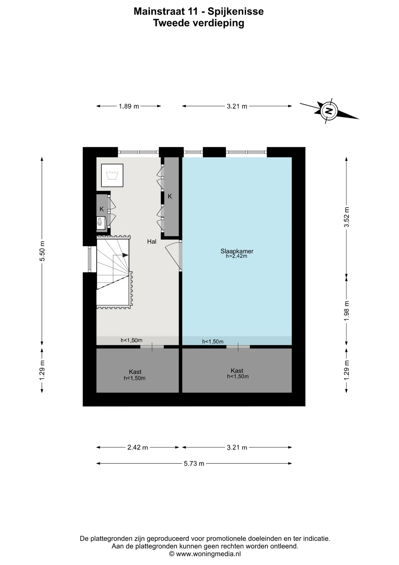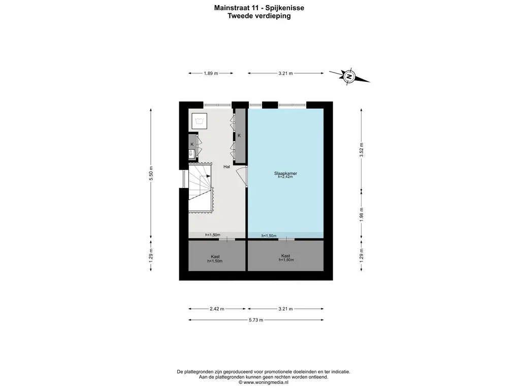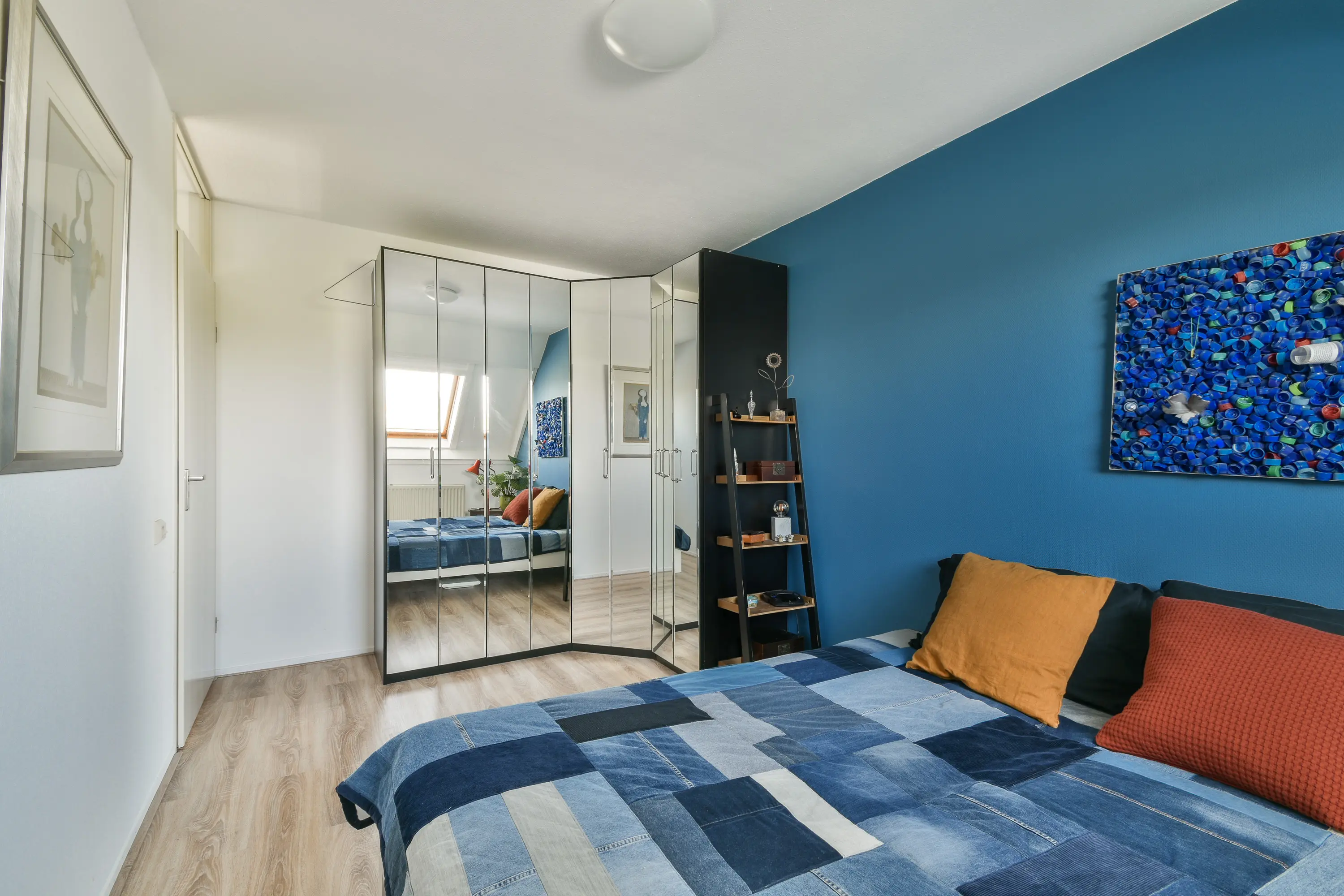 De tweede verdieping biedt een vierde, ruime slaapkamer met veel lichtinval. Daarnaast is hier een wasruimte met aansluitingen voor wasmachine en droger, evenals extra bergruimte achter de knieschotten.
