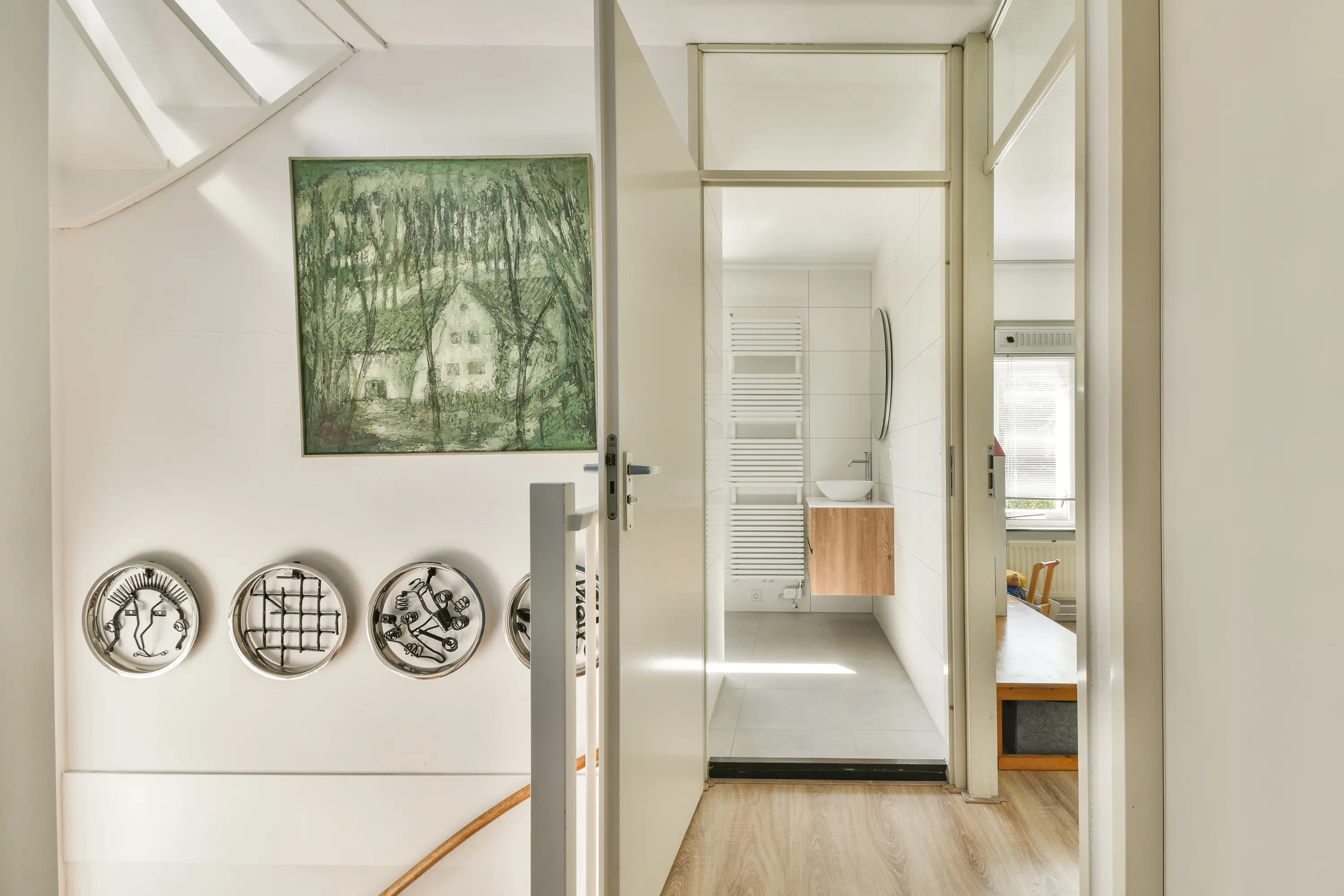Op de eerste verdieping bevinden zich drie slaapkamers en de badkamer. De badkamer is modern en uitgerust met een inloopdouche, wastafel en tweede toilet. Dankzij de rechte gevels zijn de kamers praktisch in te delen en ideaal te gebruiken als slaap, werk of hobbyruimte.