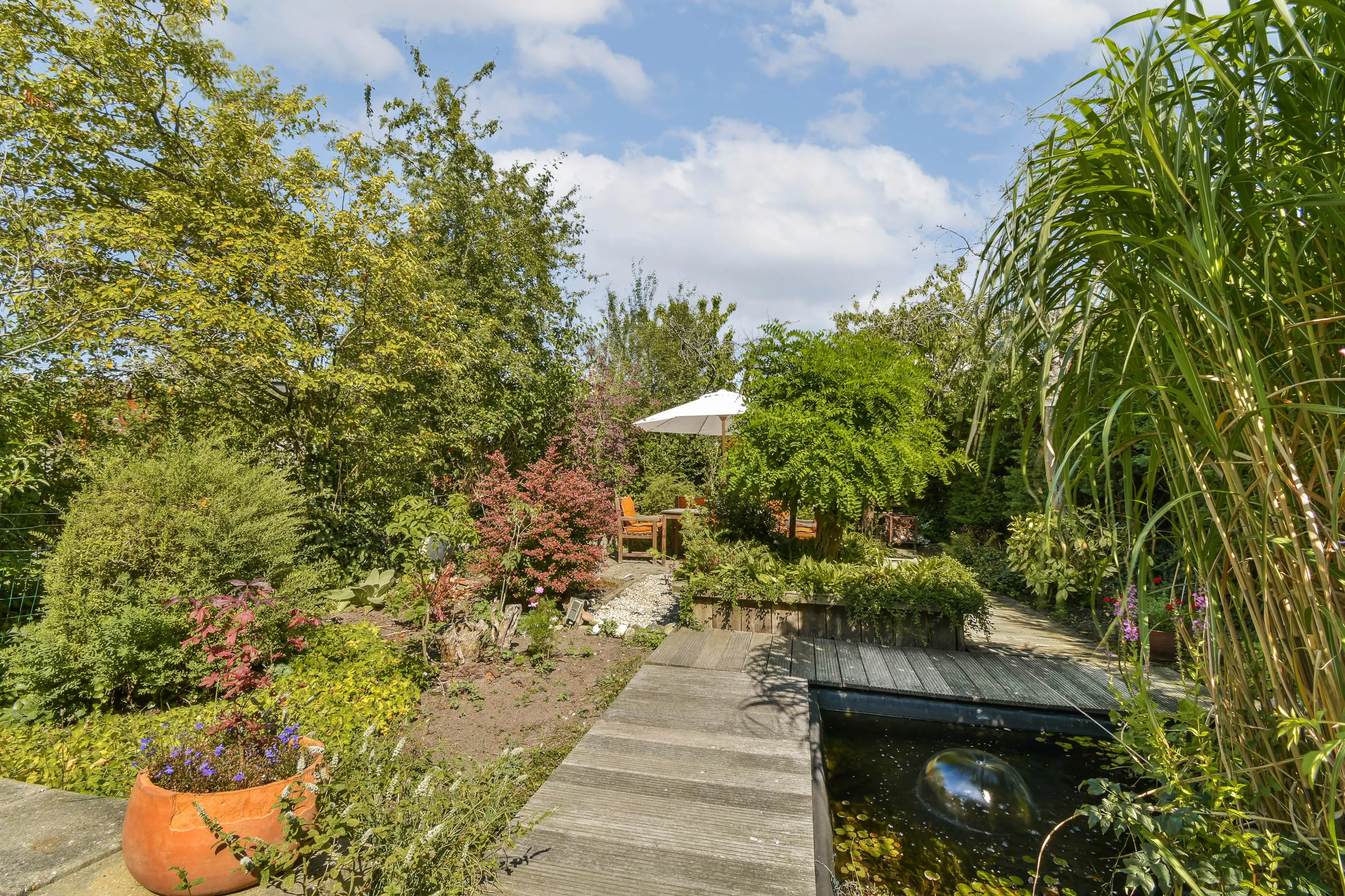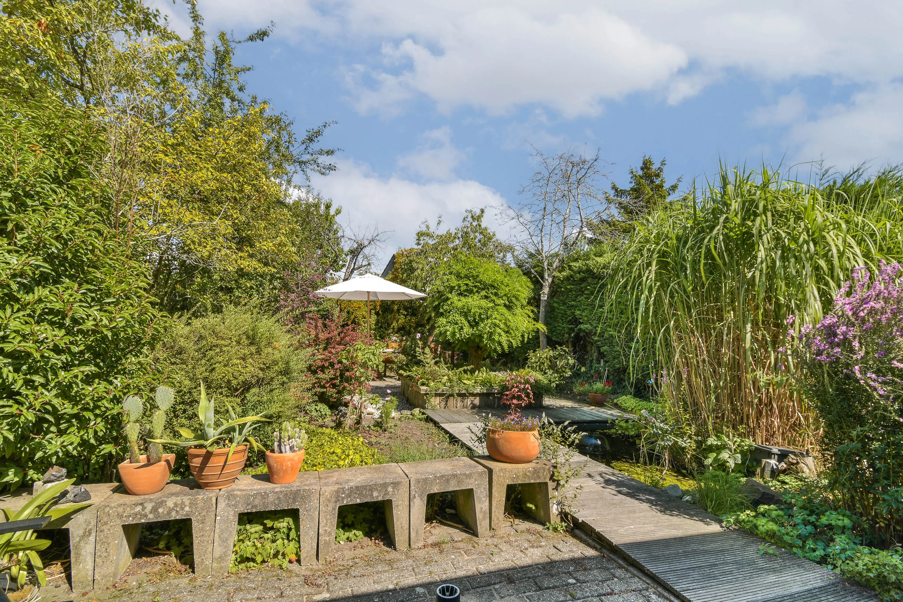 De achtertuin van circa 125 m² is fraai aangelegd, groen en gelegen op het zuidwesten. Een perfecte plek om in alle rust van de zon te genieten. Dankzij de beplanting biedt de tuin veel privacy.