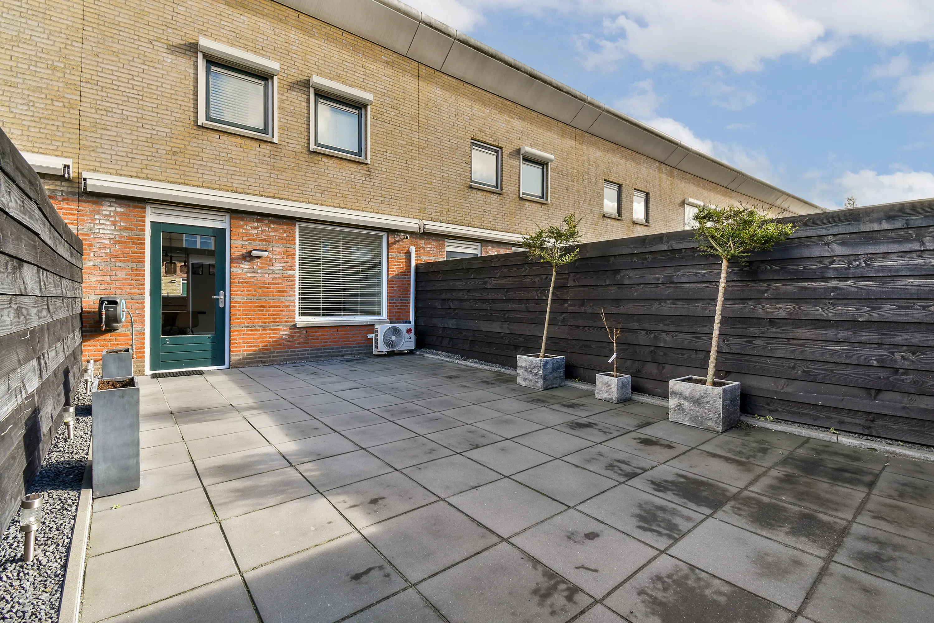 De fraai aangelegde achtertuin is gelegen op het westen, waardoor u volop kunt genieten van de middag- en avondzon. De tuin beschikt over een waterpunt en een zonnescherm, ideaal voor warme zomerdagen. Achterin bevindt zich een ruime berging met wateraansluiting en een klein keukentje, waardoor deze ruimte uitstekend te gebruiken is als praktijk- of hobbyruimte. Dankzij de aanwezige airconditioning is het hier ook in de zomer aangenaam koel en in de winter lekker warm. De ruimte kan eenvoudig met een gordijn worden gescheiden om deels als berging te gebruiken. Ook aan de voorzijde is gedacht aan gemak: de voortuin beschikt namelijk over een eigen waterkraantje.
