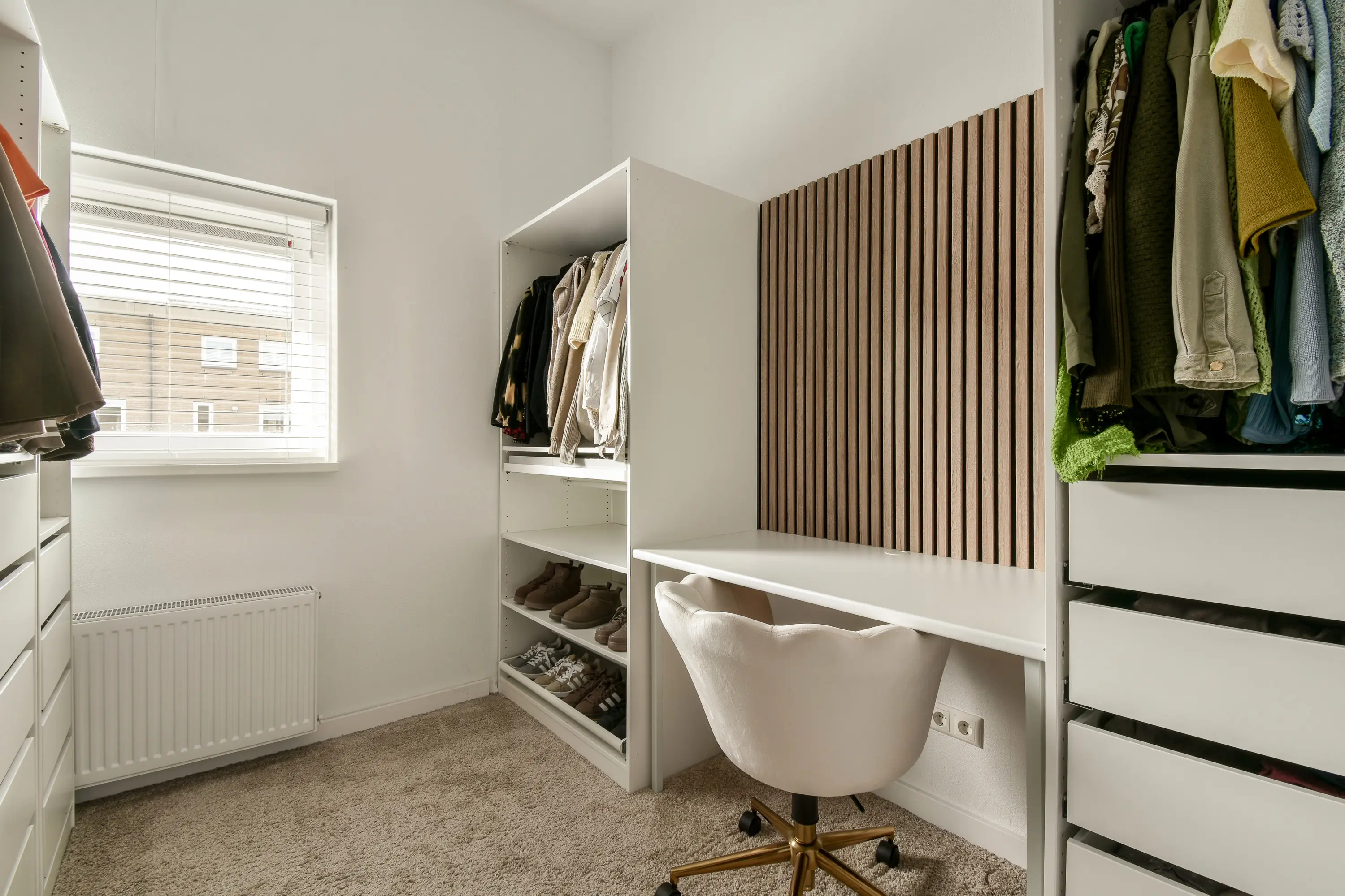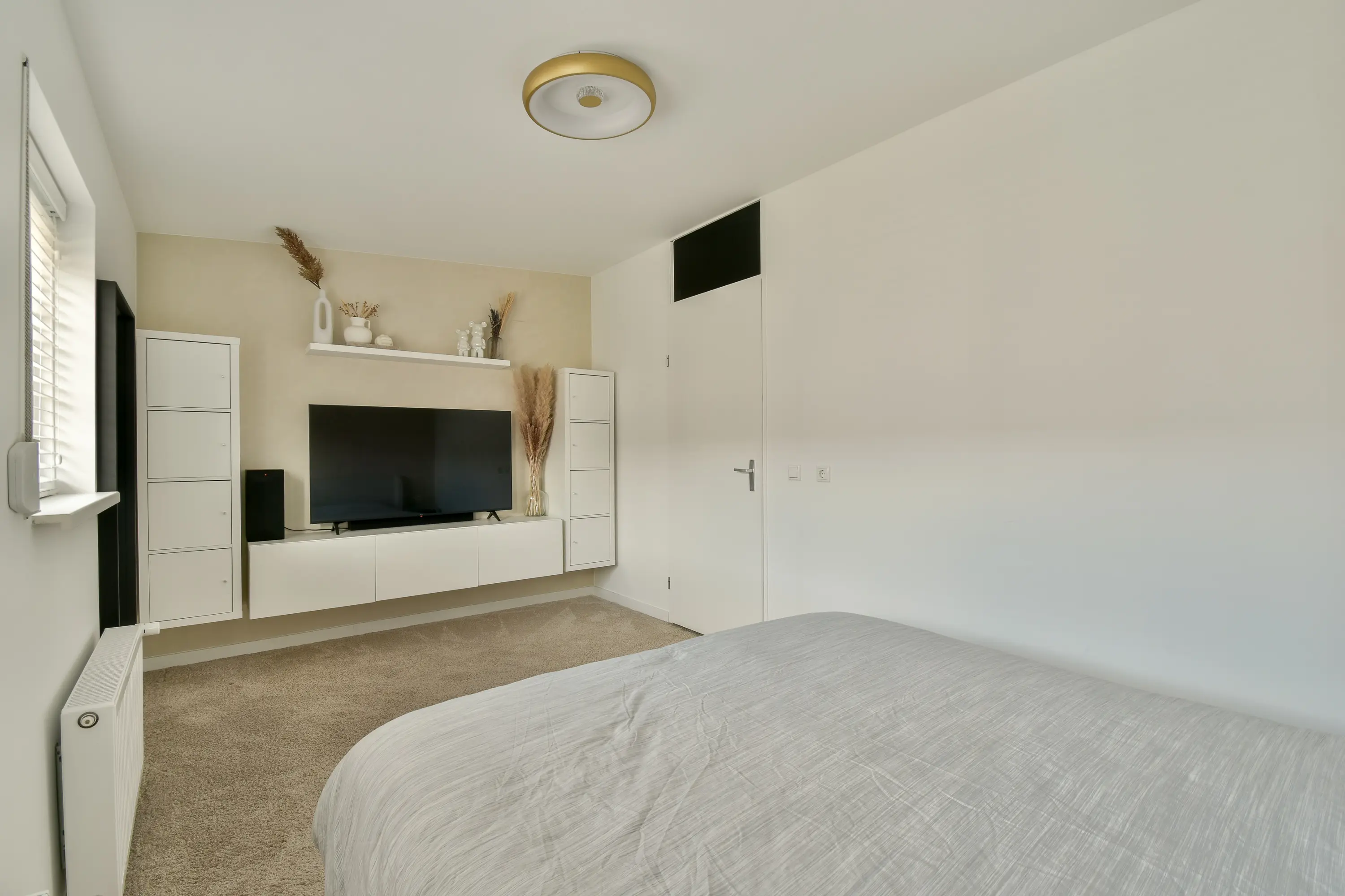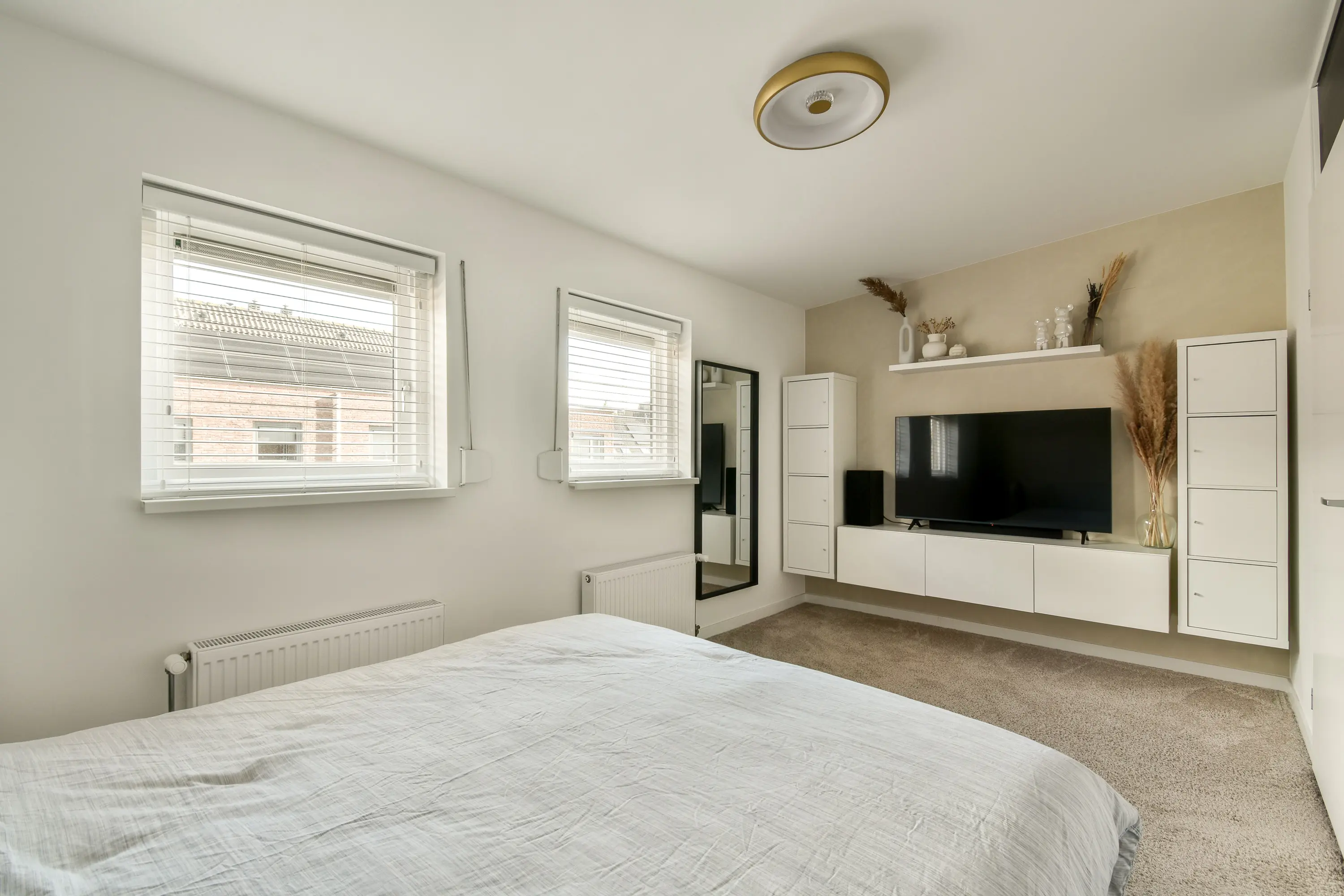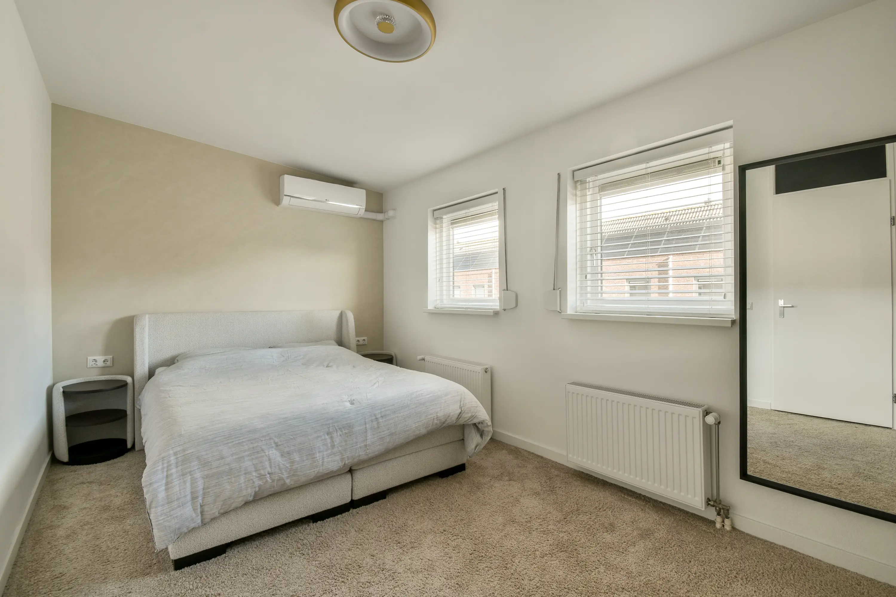 Via de overloop bereikt u drie comfortabele slaapkamers, de badkamer en een aparte wasruimte. Alle slaapkamers zijn voorzien van nette vloerbedekking. De ruime hoofdslaapkamer aan de voorzijde beschikt over rolluiken en airconditioning, terwijl de twee slaapkamers aan de achterzijde profiteren van hoge plafonds, veel lichtinval en eveneens rolluiken. De badkamer is modern en volledig betegeld, met een inloopdouche, wastafelmeubel en toilet. Daarnaast beschikt deze verdieping over een praktische wasruimte, een vaste kast naast de trap met de cv-installatie (2021) en extra opbergruimte boven de trap.