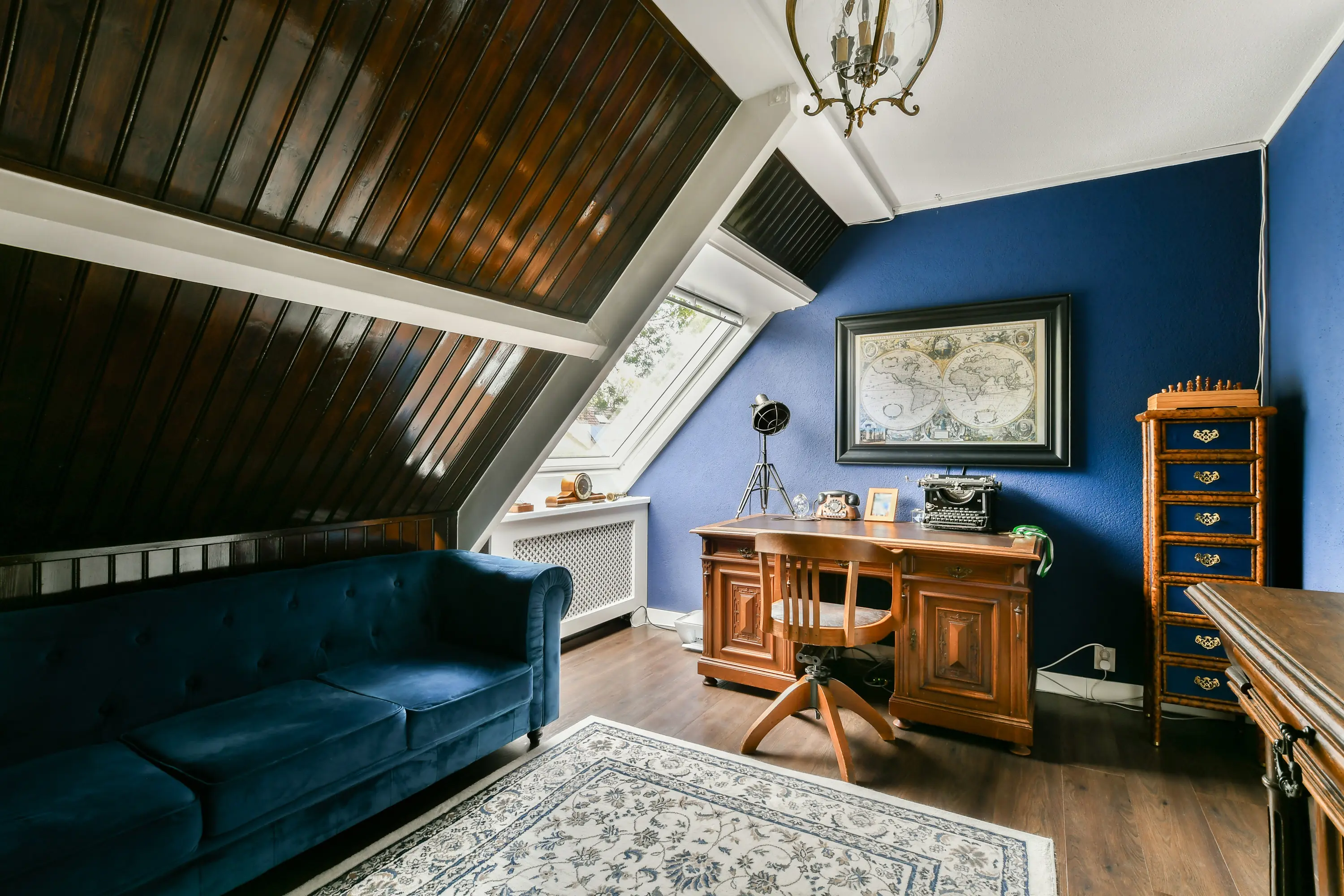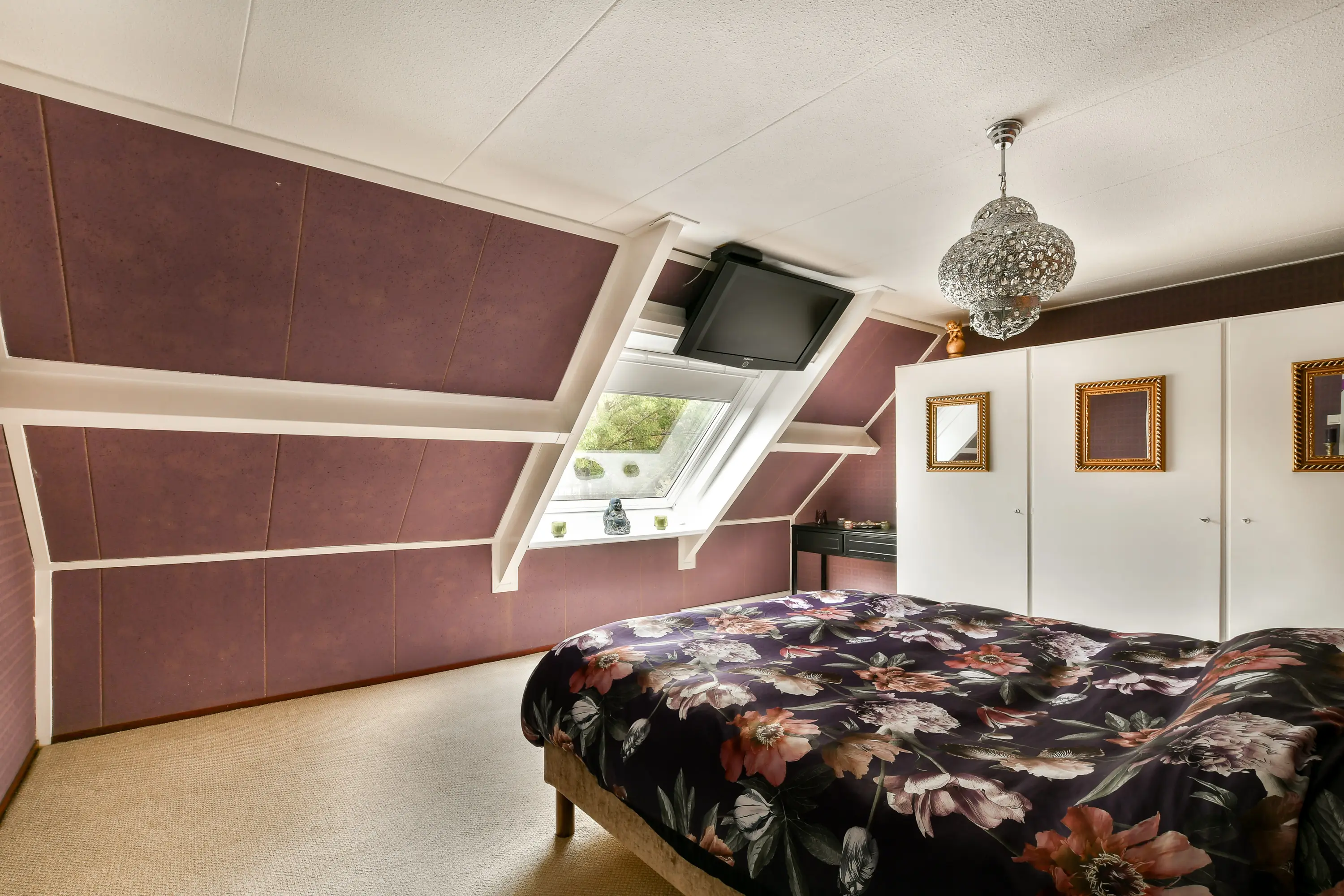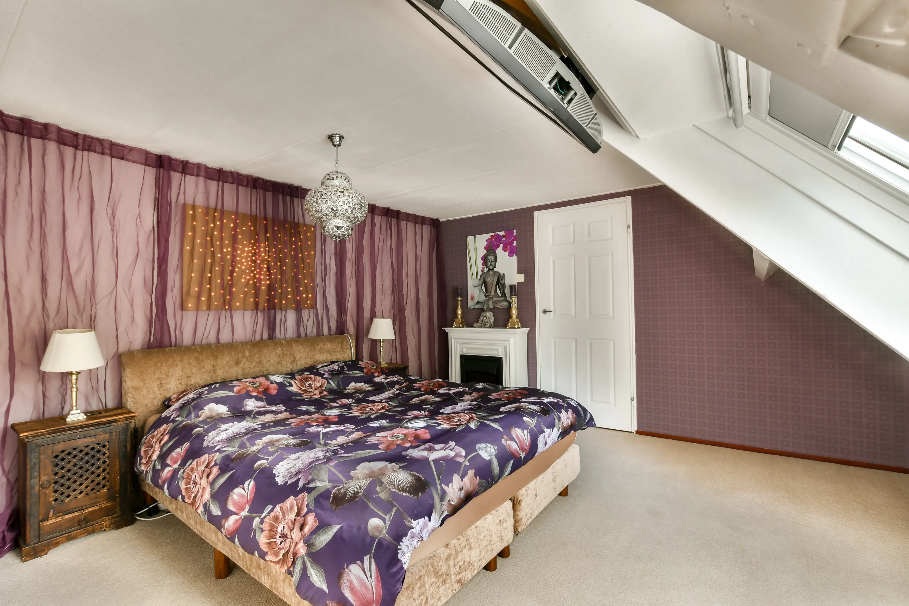 De vaste trap leidt naar de derde slaapkamer, voorzien van een dakraam en vloerbedekking. Ideaal als hoofdslaapkamer, werkkamer of logeerkamer.