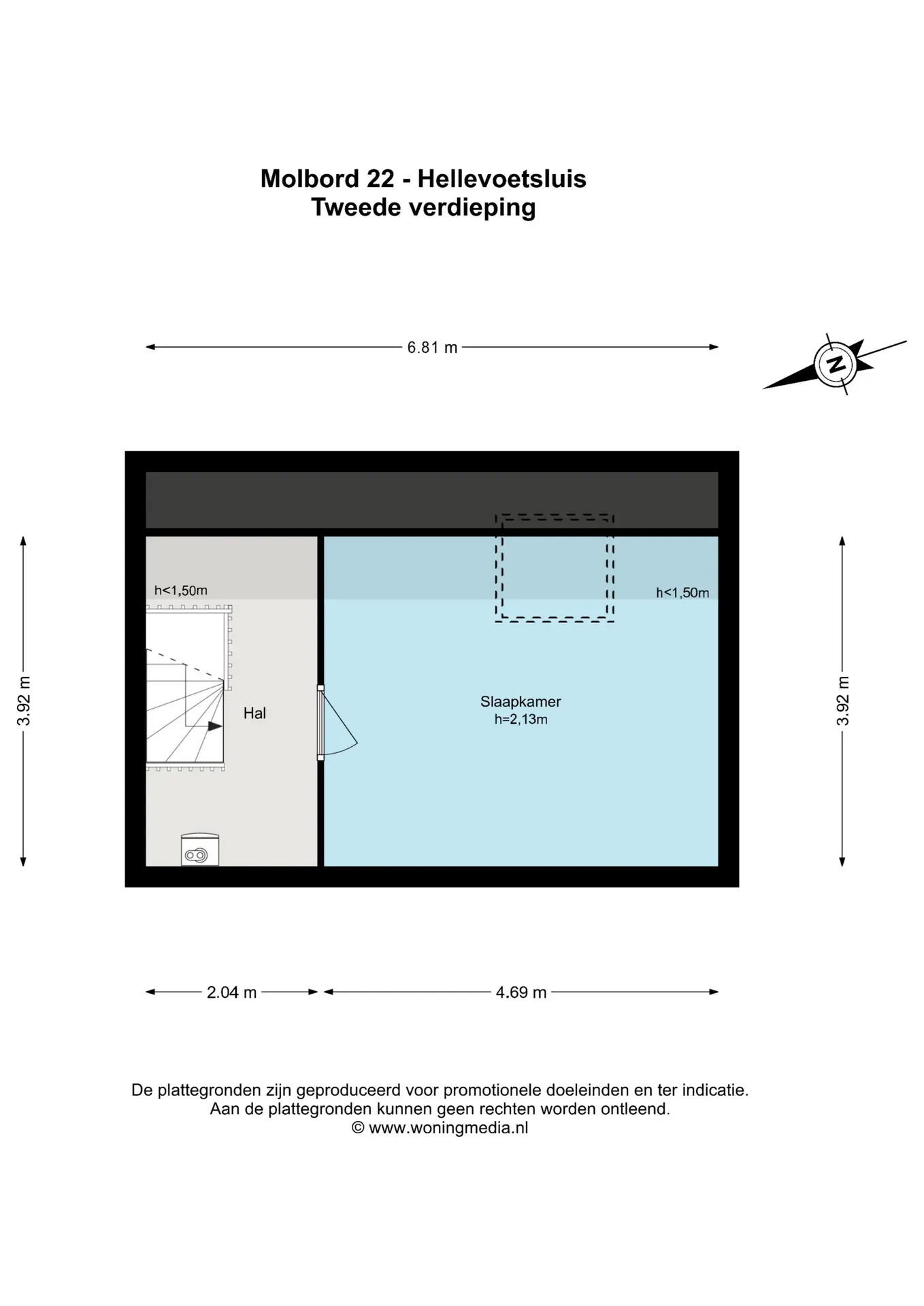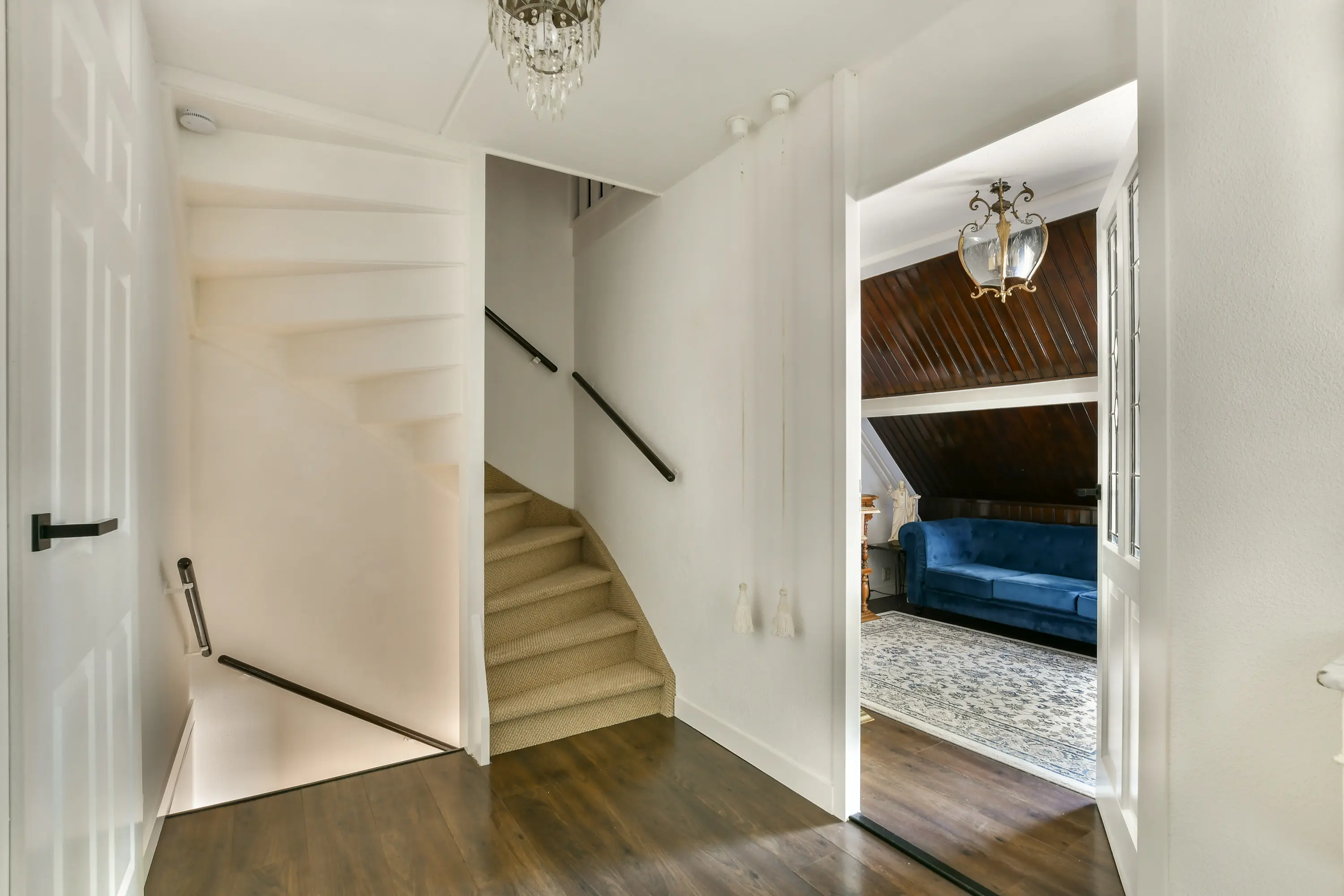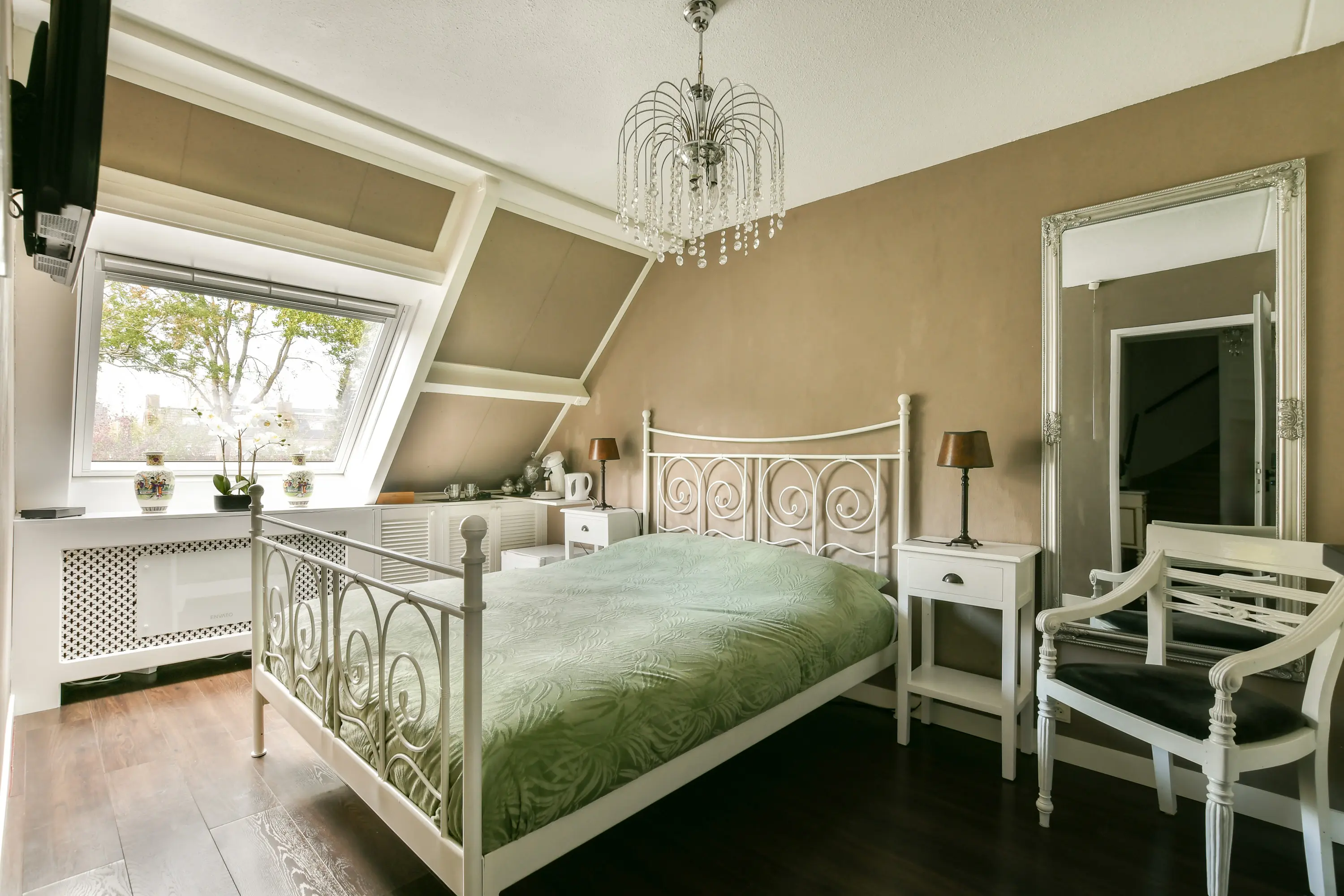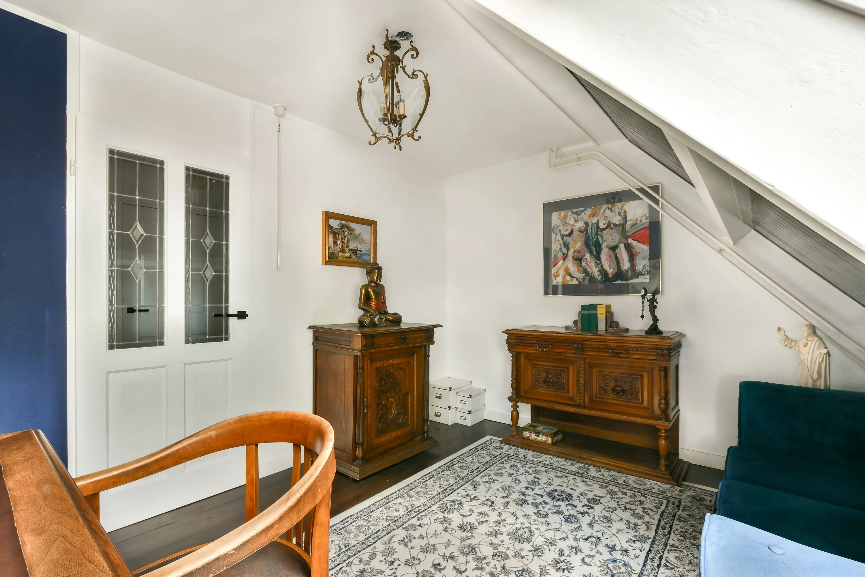 De vaste trap leidt naar de derde slaapkamer, voorzien van een dakraam en vloerbedekking. Ideaal als hoofdslaapkamer, werkkamer of logeerkamer.
