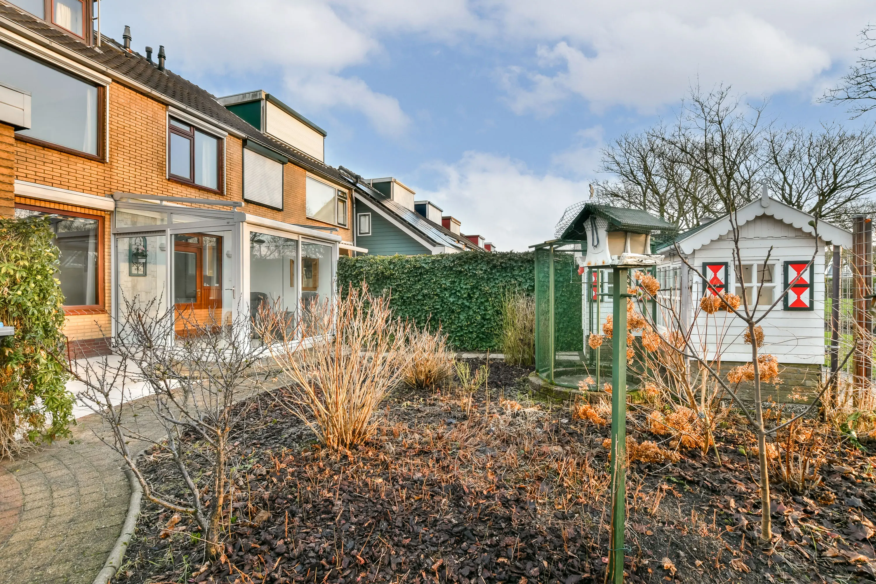 De woning is gelegen op een hoek en beschikt over een zeer royale tuin van in totaal circa 130 m², verdeeld over een voor- en achtertuin. De tuin is groen aangelegd, biedt veel privacy en beschikt over meerdere zitplekken om de hele dag van de zon te genieten. Daarnaast is er een berging, ideaal voor fietsen en tuingereedschap.