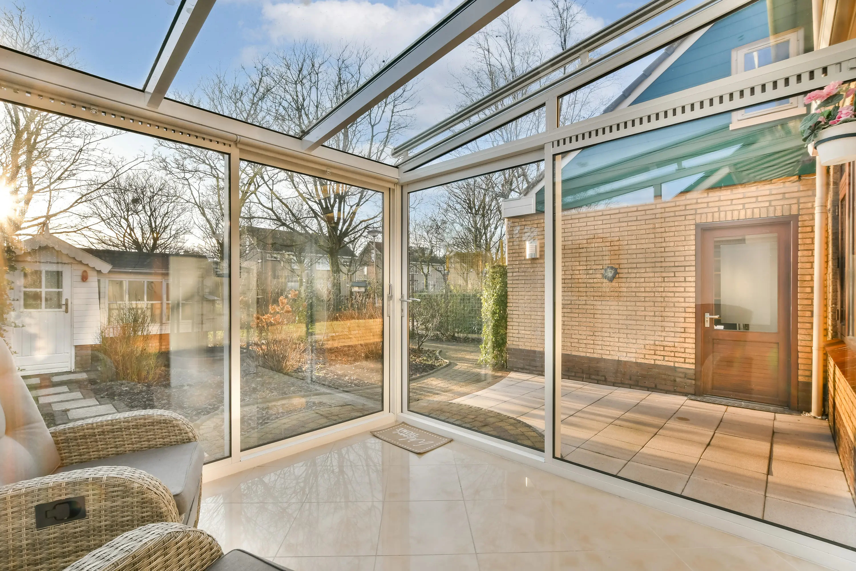 - Onderheide serre met zonwering;