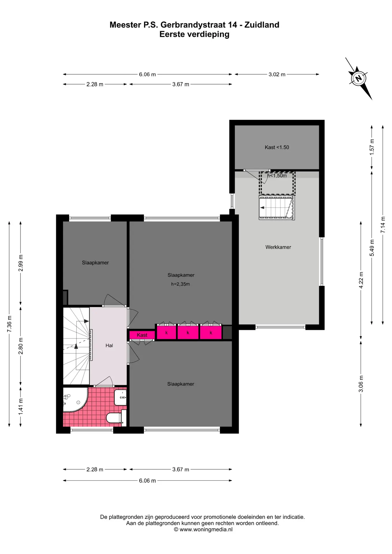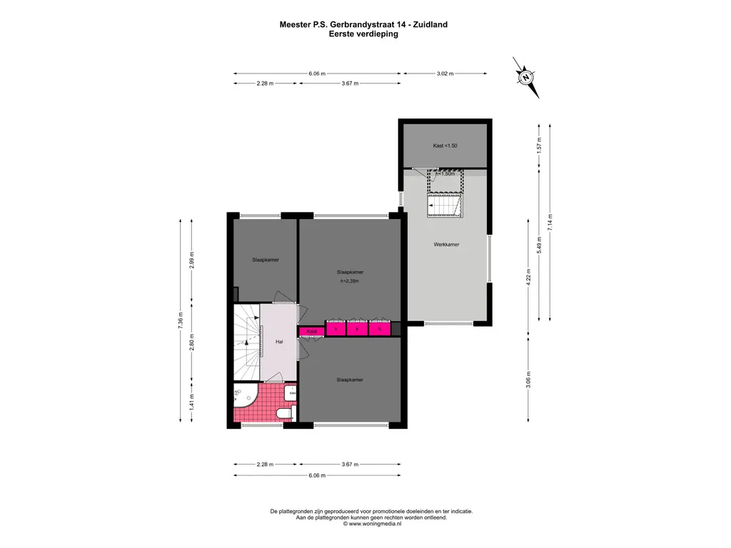 Op de eerste verdieping bevinden zich drie slaapkamers, allen van goed formaat. De badkamer is netjes afgewerkt en voorzien van een douche, wastafel en toilet. In de twee grootste slaapkamers zijn vaste kasten aanwezig, wat zorgt voor extra bergruimte.