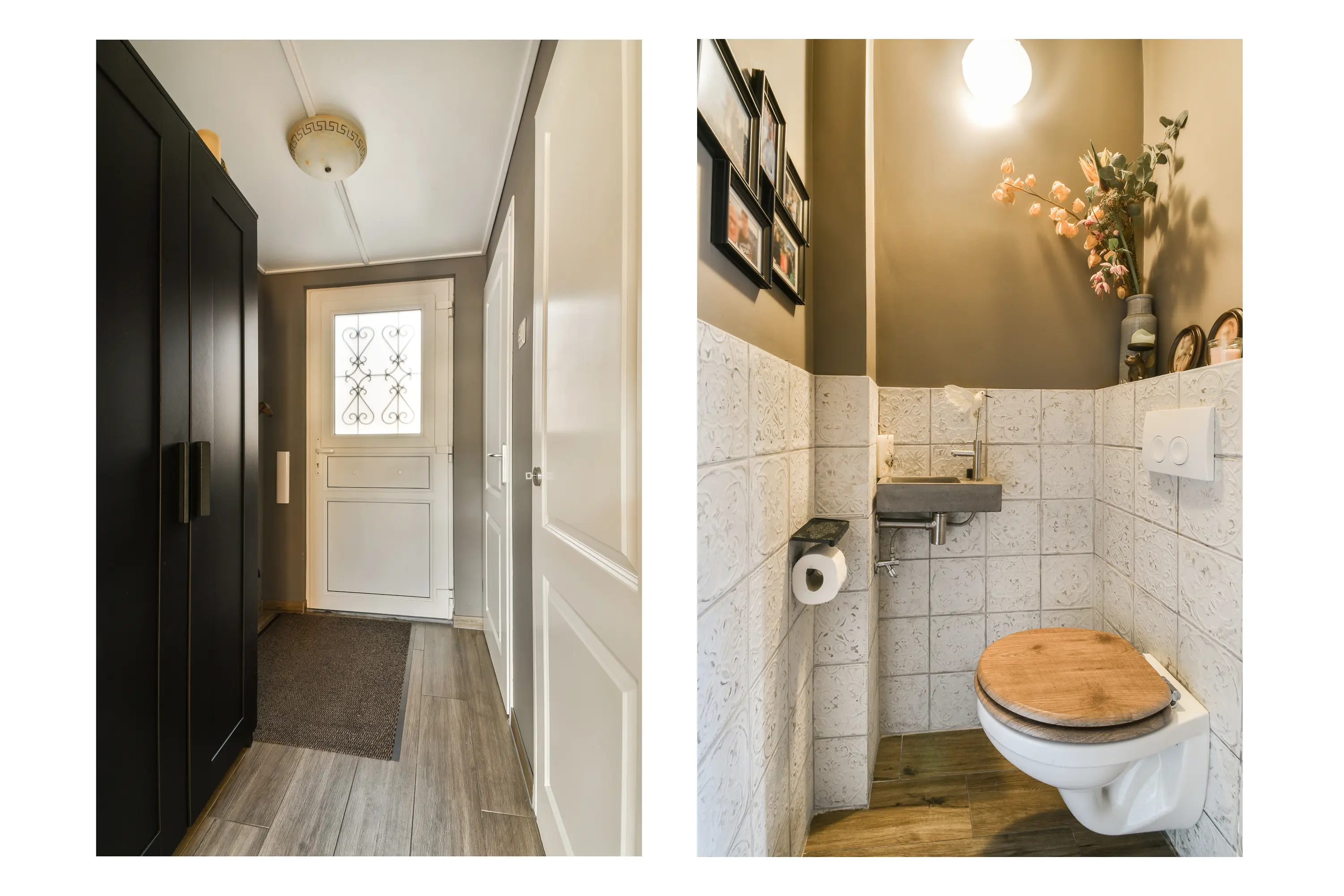 Via de hal bereik je direct het moderne toilet, compleet uitgevoerd met hangcloset en fontein. Vanuit de hal loop je door naar de lichte en ruime woonkamer. De begane grond is voorzien van vloerverwarming met 5 groepen, wat zorgt voor een aangenaam wooncomfort. In de woonkamer valt direct de sfeervolle Jotul Houtkachel op, die een warme en gezellige sfeer creëert op koudere dagen. Dankzij de grote raampartijen en de openslaande deuren naar de tuin is er volop licht en een fijn contact met buiten.