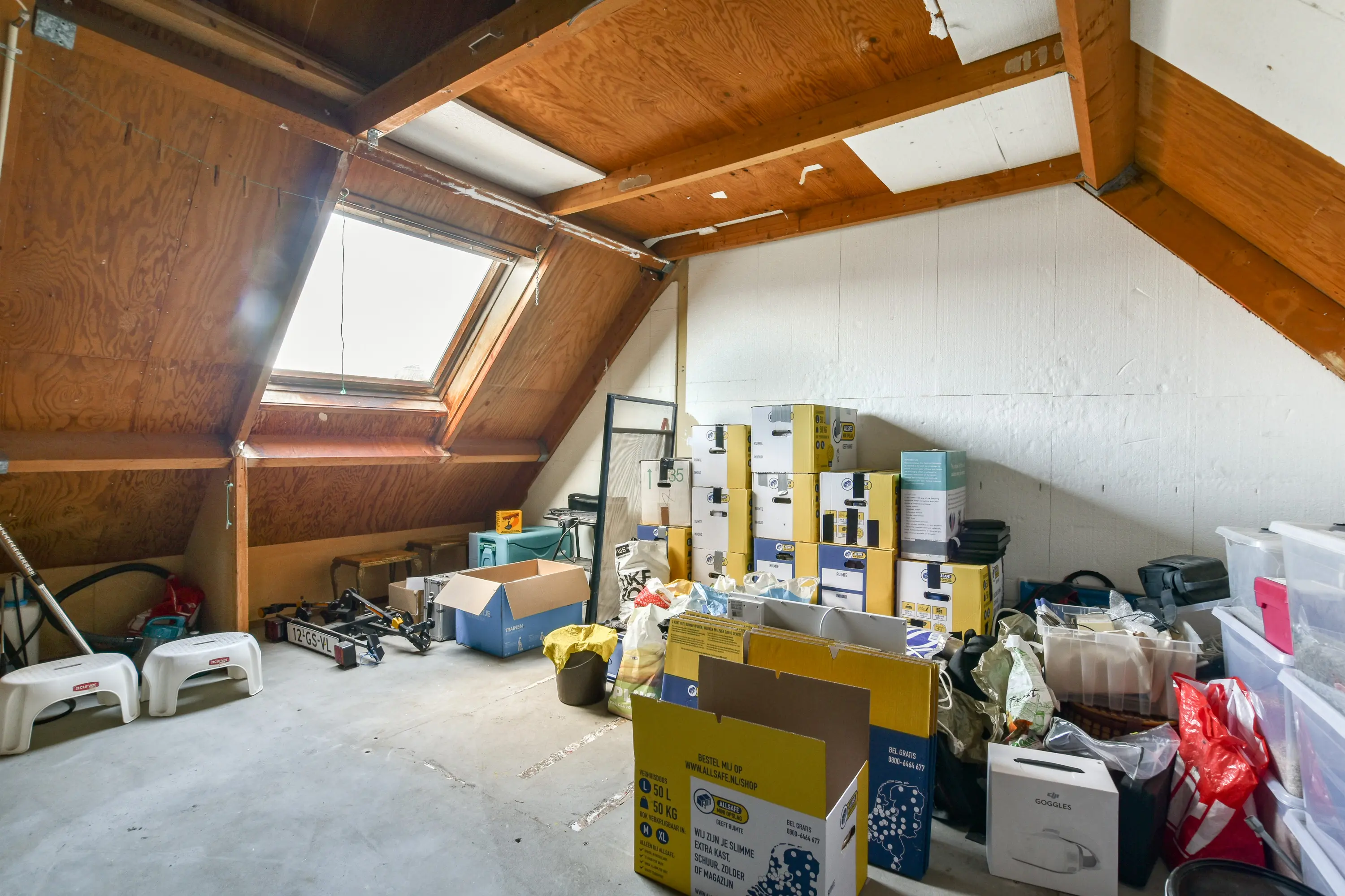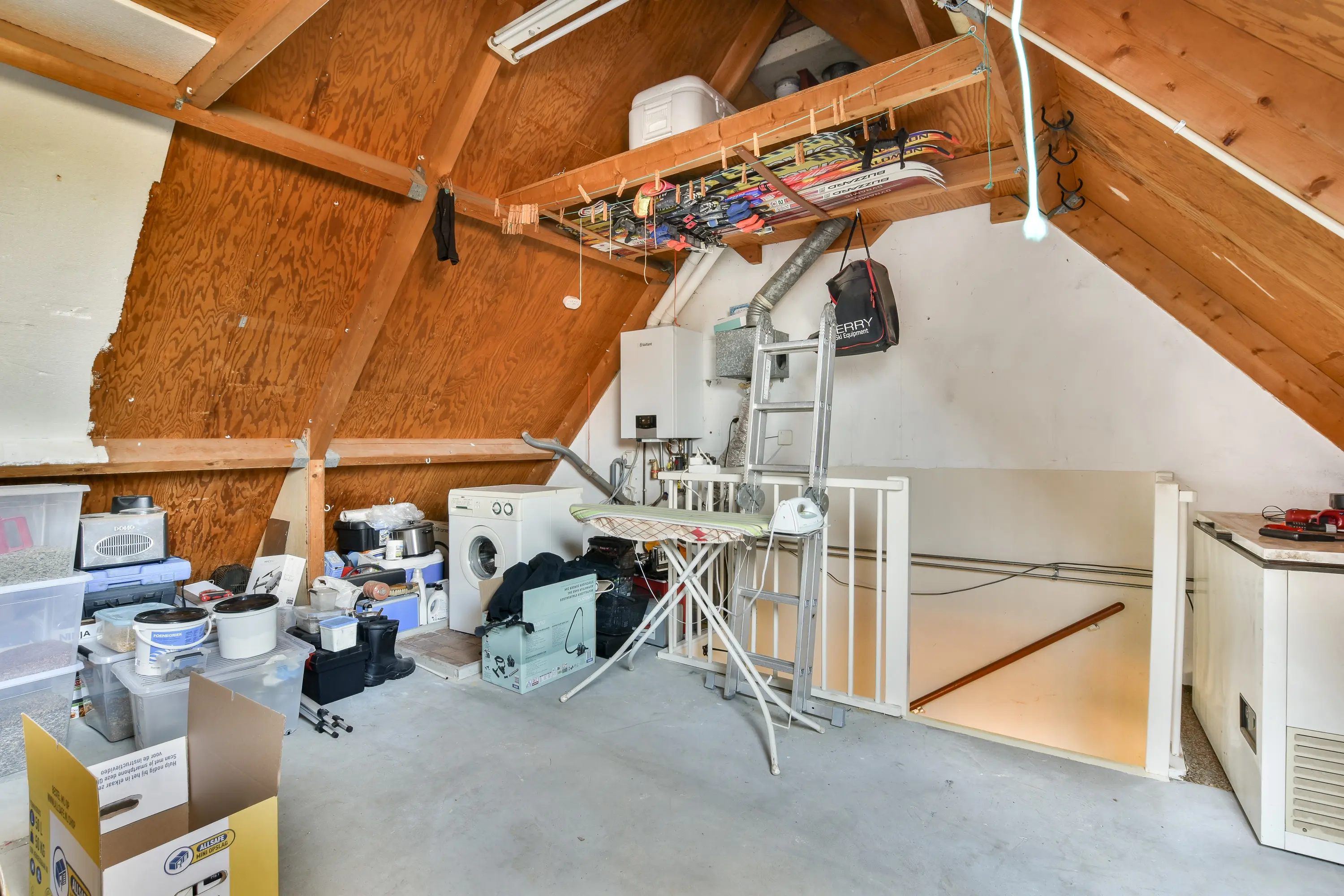 Een grote open ruimte met dakramen, aansluiting voor wasmachine en droger en de cv-ketel uit 2025. Ideaal voor het realiseren van een vierde slaapkamer of hobbyruimte. Dankzij de twee vlieringen is er bovendien volop bergruimte aanwezig.