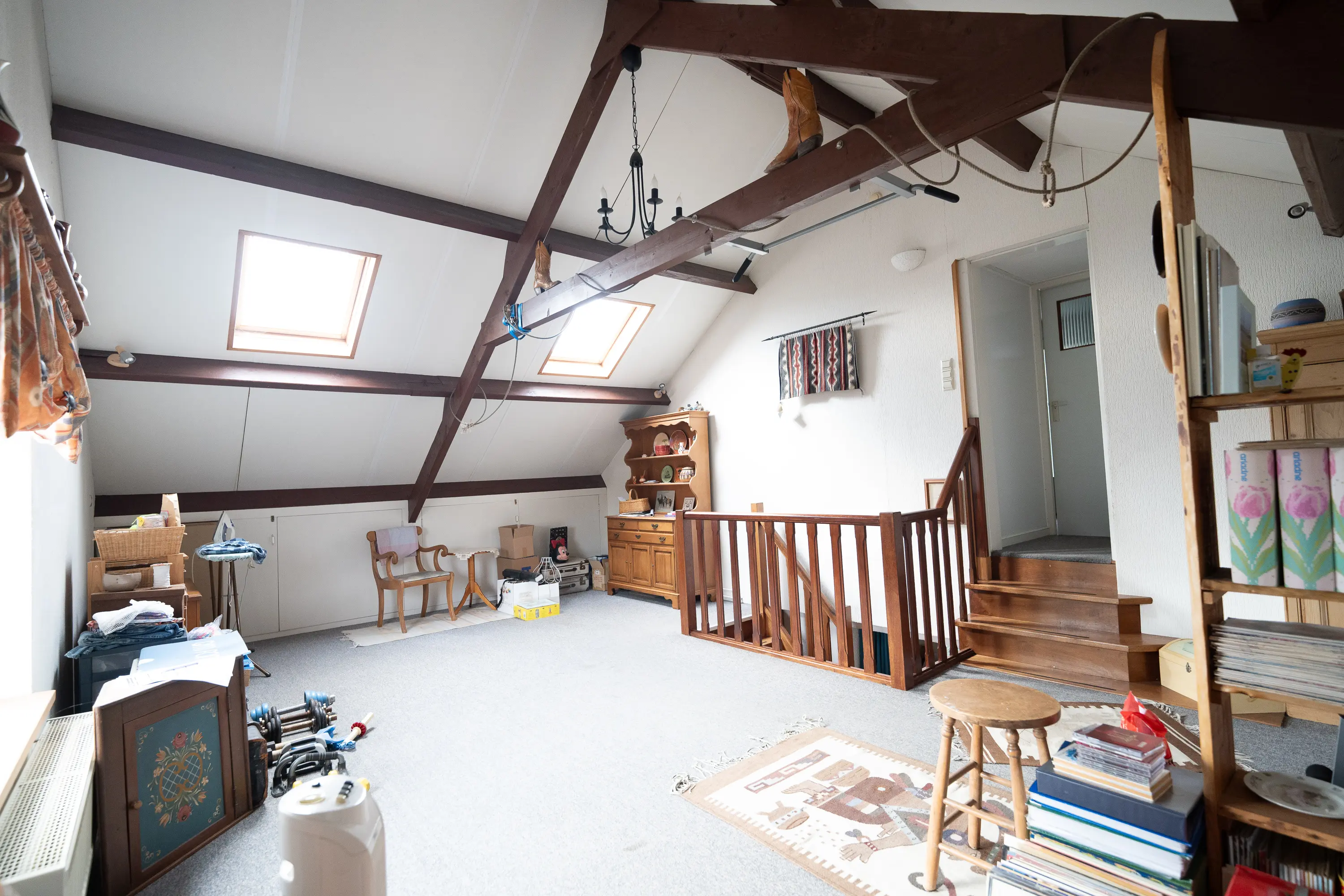 Via een hardhouten trap bereikt u de eerste verdieping met een ruime overloop en vaste kastruimte. Hier bevinden zich drie slaapkamers, waarvan twee zijn voorzien van dakkapellen. Alle slaapkamers beschikken over een wastafel met warm en koud water en Velux dakramen. Daarnaast zijn er een separate douche en een derde toilet aanwezig op deze verdieping. Ook is er veel praktische bergruimte.