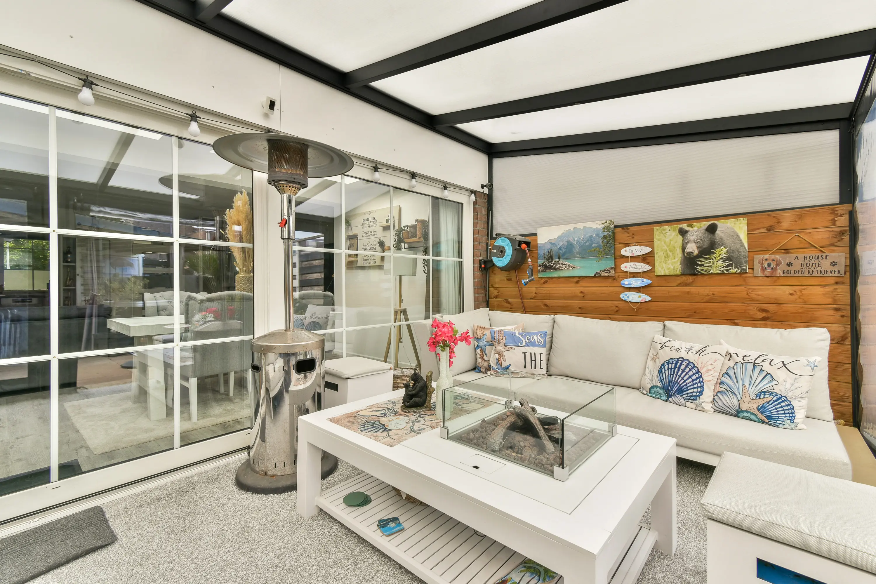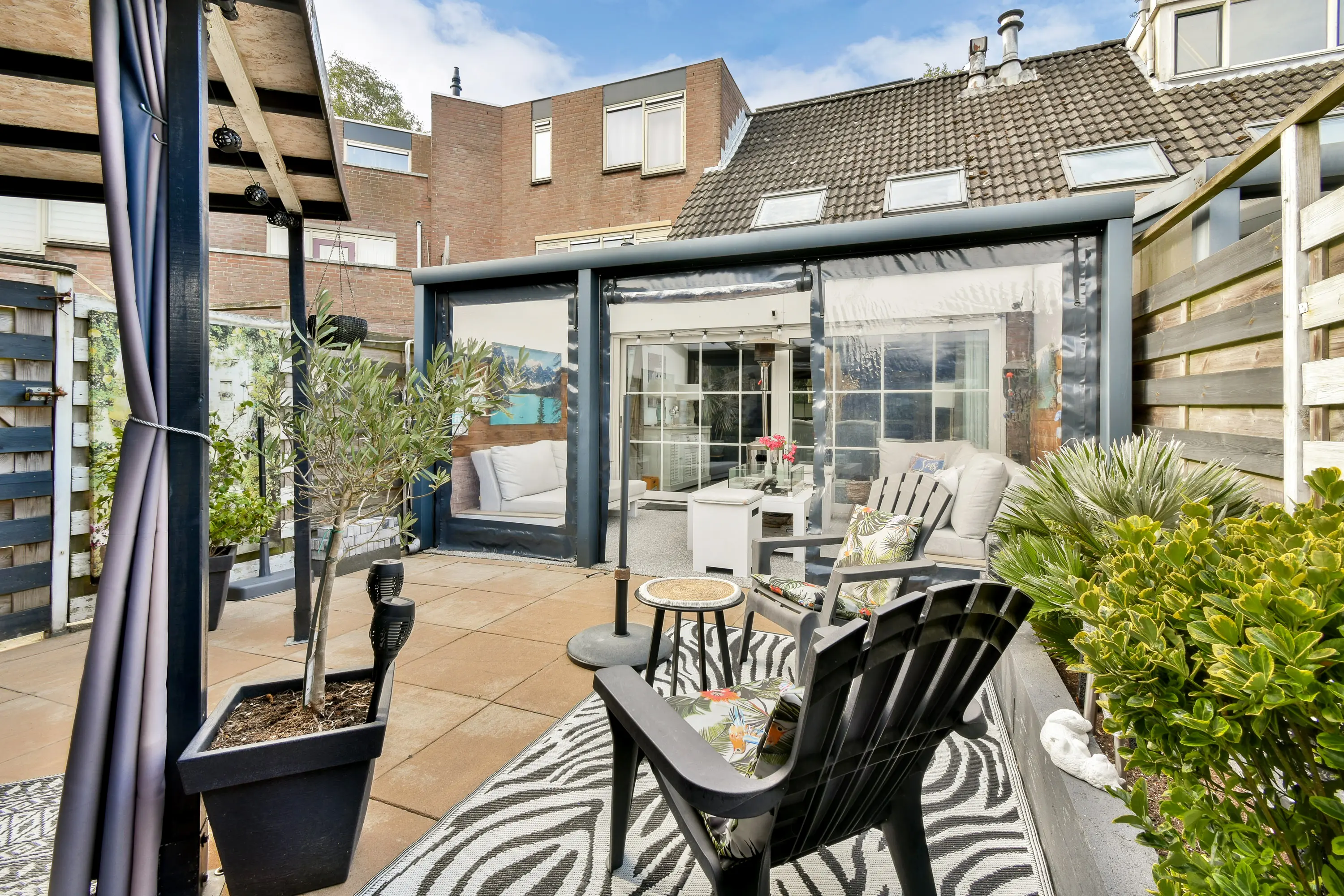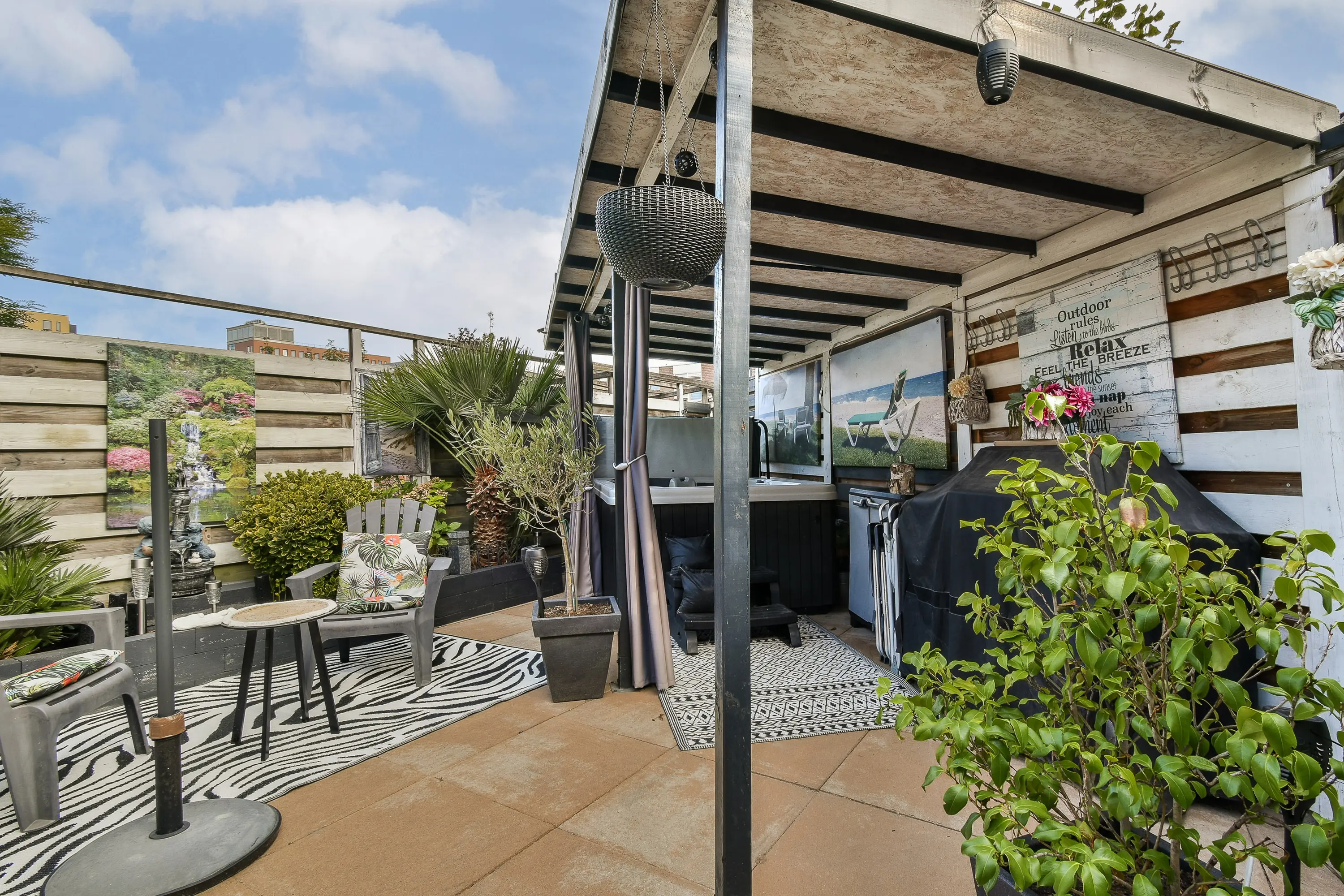 Achter de woning ligt een heerlijke tuin op het noordoosten. Dankzij de ruime overkapping met mogelijkheid tot afsluiten geniet je hier het hele jaar door van het buitenleven. Er is een gezellige loungehoek en een luxe spa, perfect voor lange zomeravonden, verjaardagen of een knusse borrel.