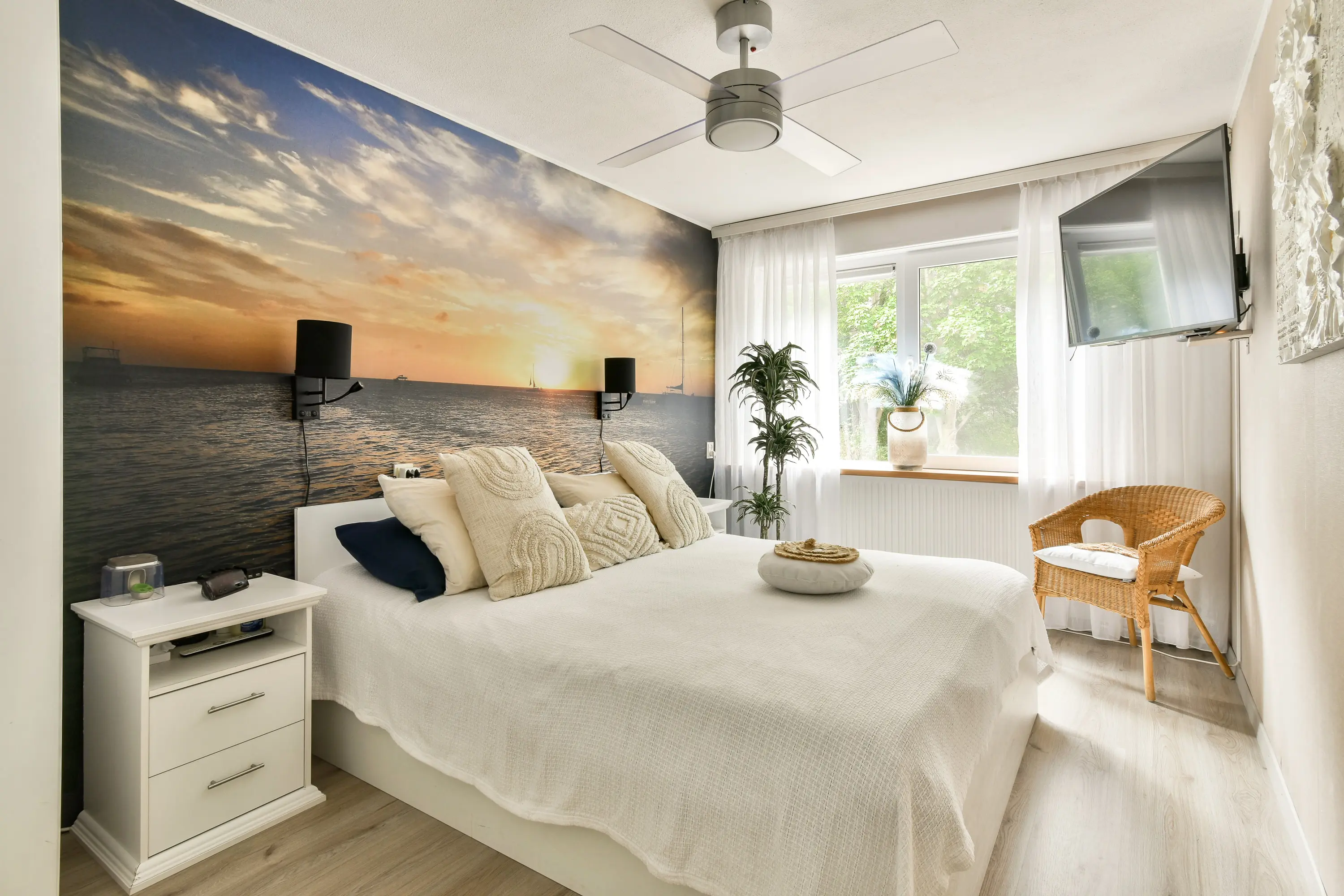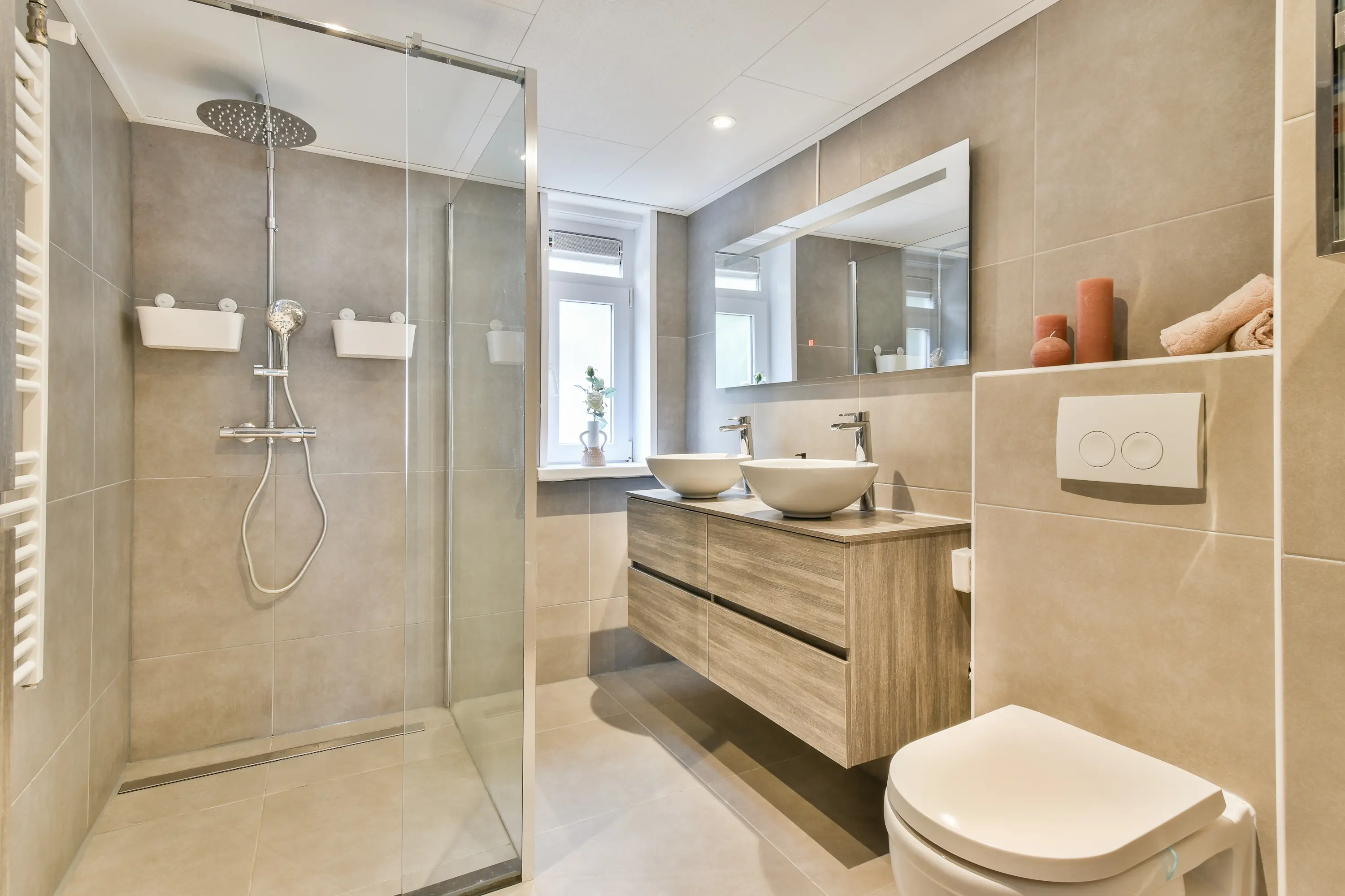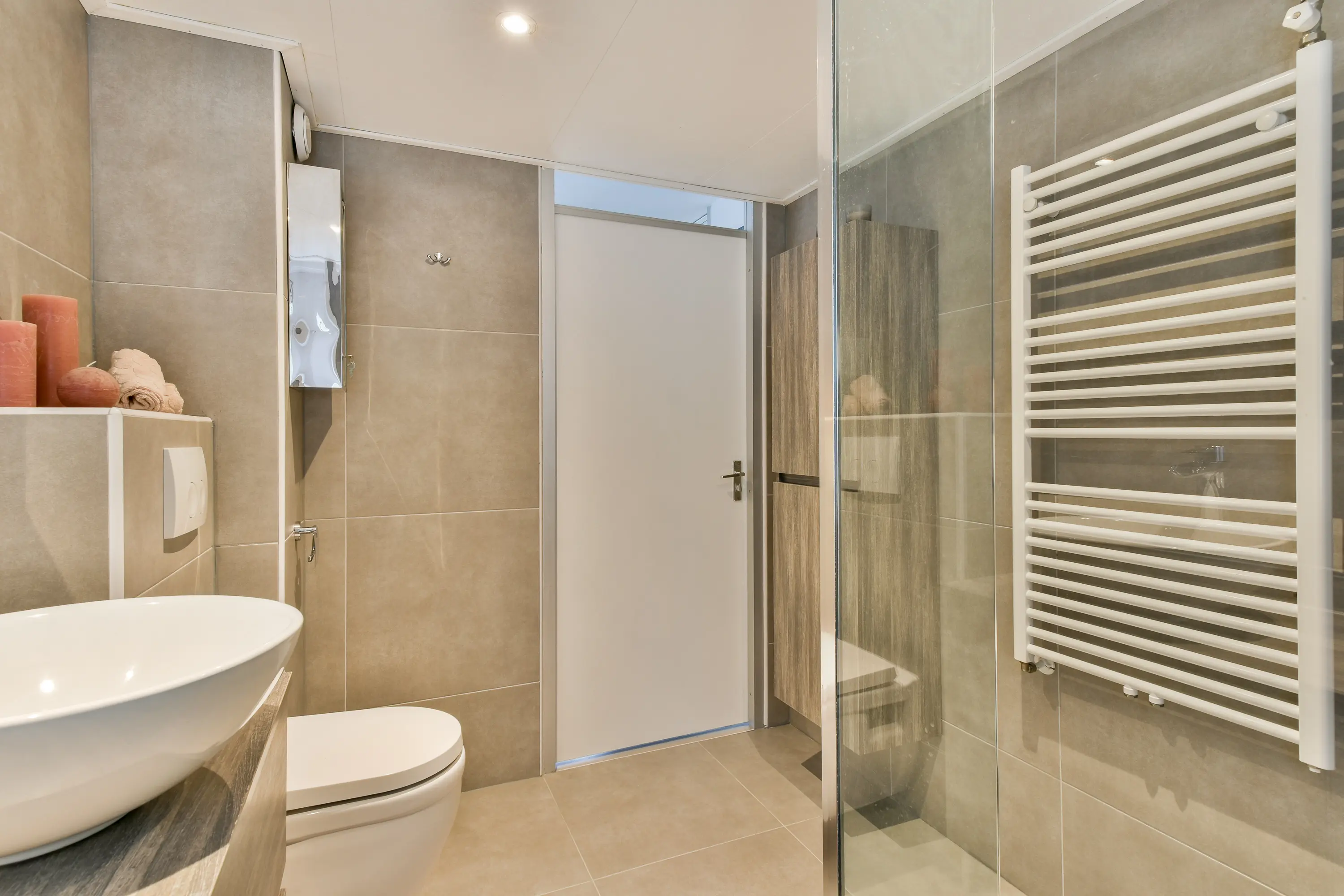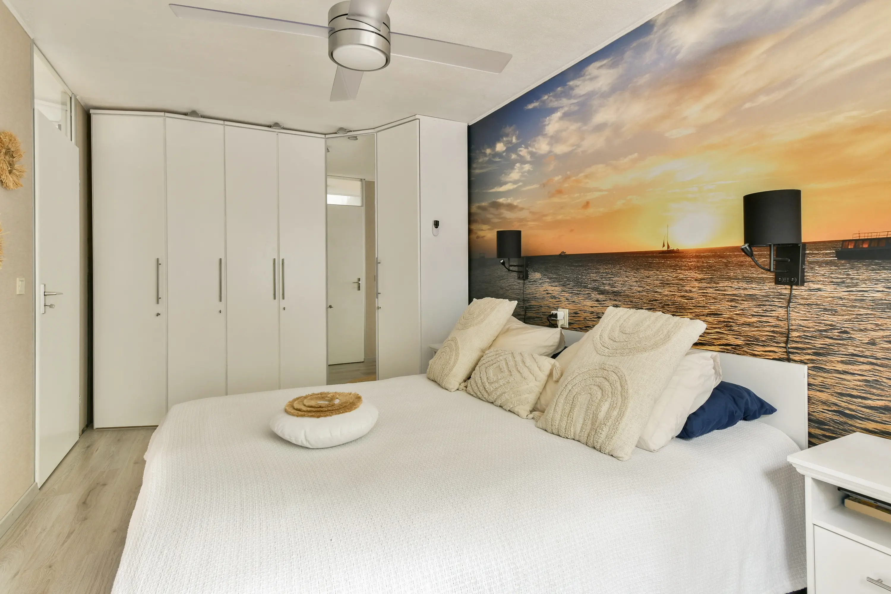 Twee ruime slaapkamers, waaronder een royale master bedroom. De badkamer is luxe afgewerkt met een inloopdouche met regendouche, dubbele waskommen, strak wastafelmeubel en hangtoilet.