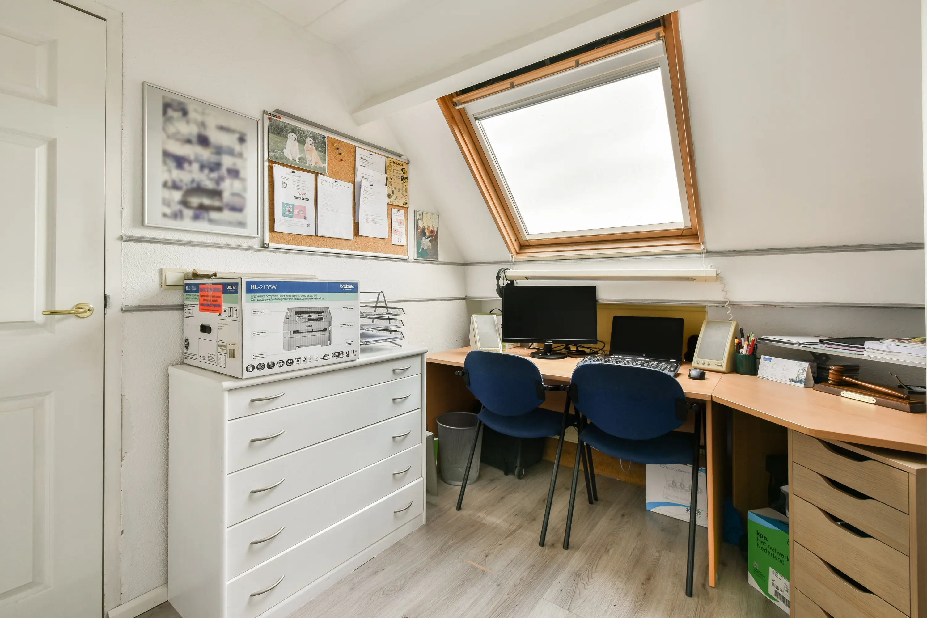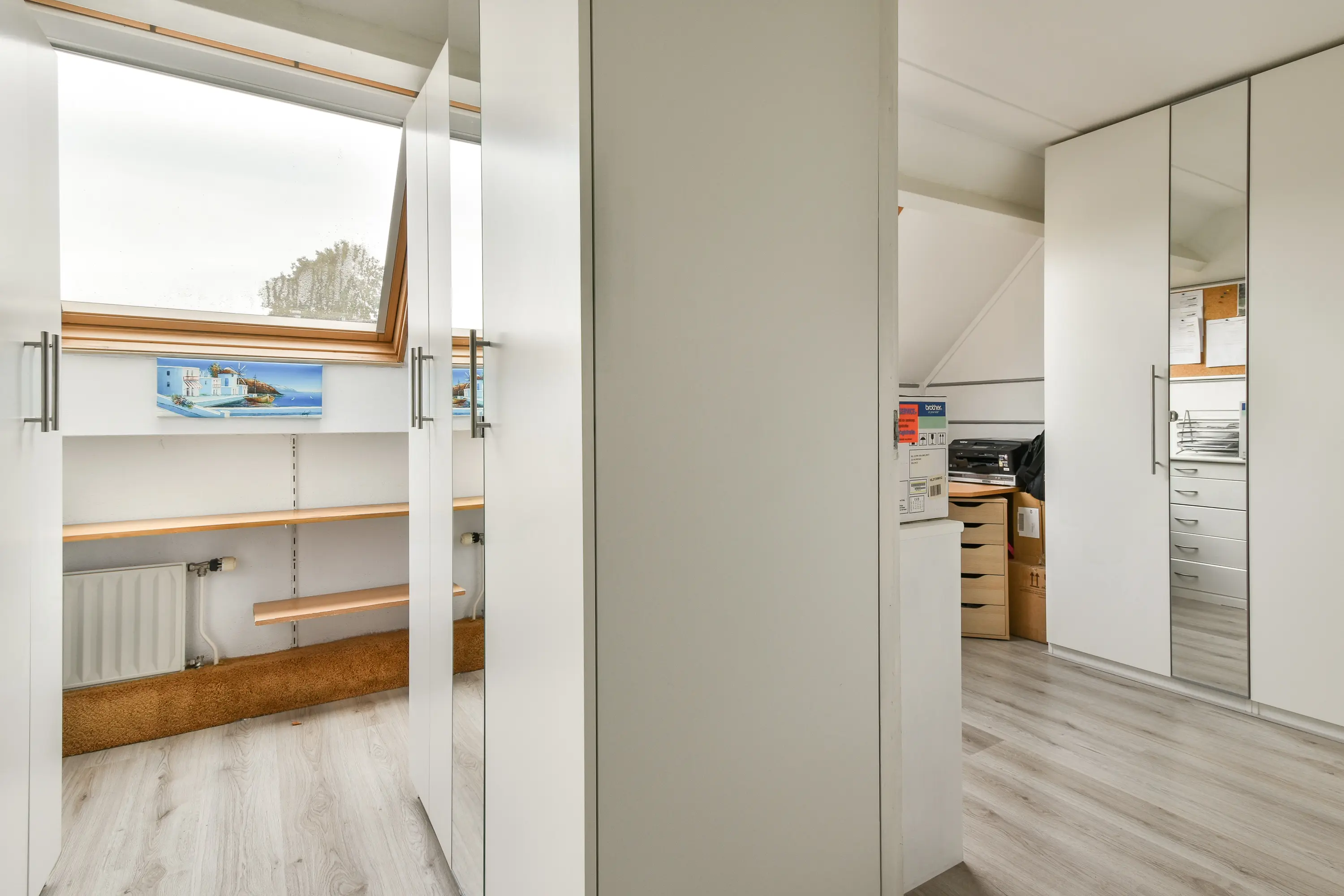 Via een vaste trap bereik je de zolderkamer, ideaal als derde slaapkamer, werkkamer of hobbyruimte. Hier is ook praktische bergruimte aanwezig.