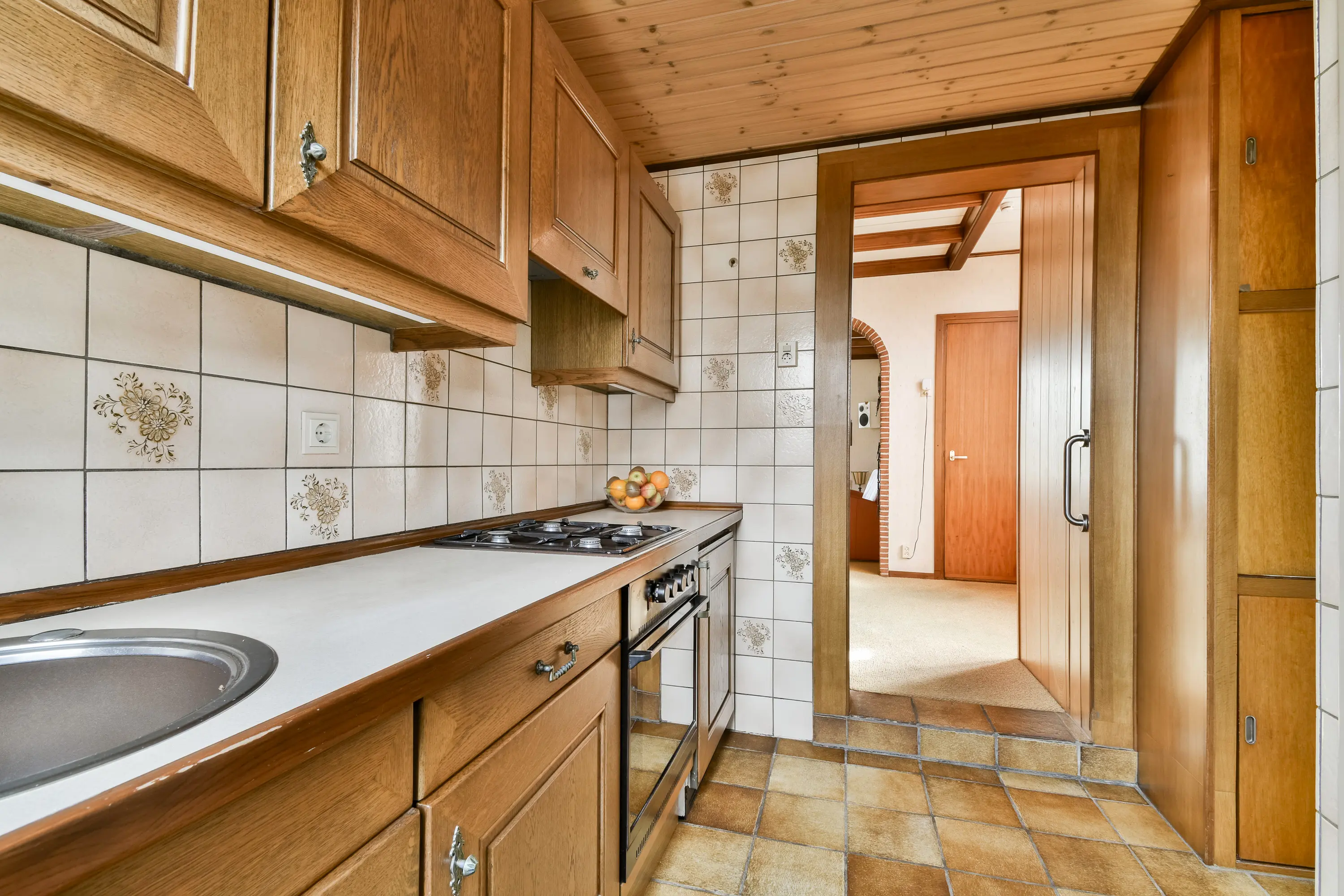 De woning wordt momenteel betreden via de keuken of via de garage. Vanuit de keuken komt u direct in het hart van de woning. De keuken staat in verbinding met de eetkamer, die aan de achterzijde van de woning is gelegen. Hierdoor ontstaat een fijne en open leefruimte met prettig contact met de tuin.