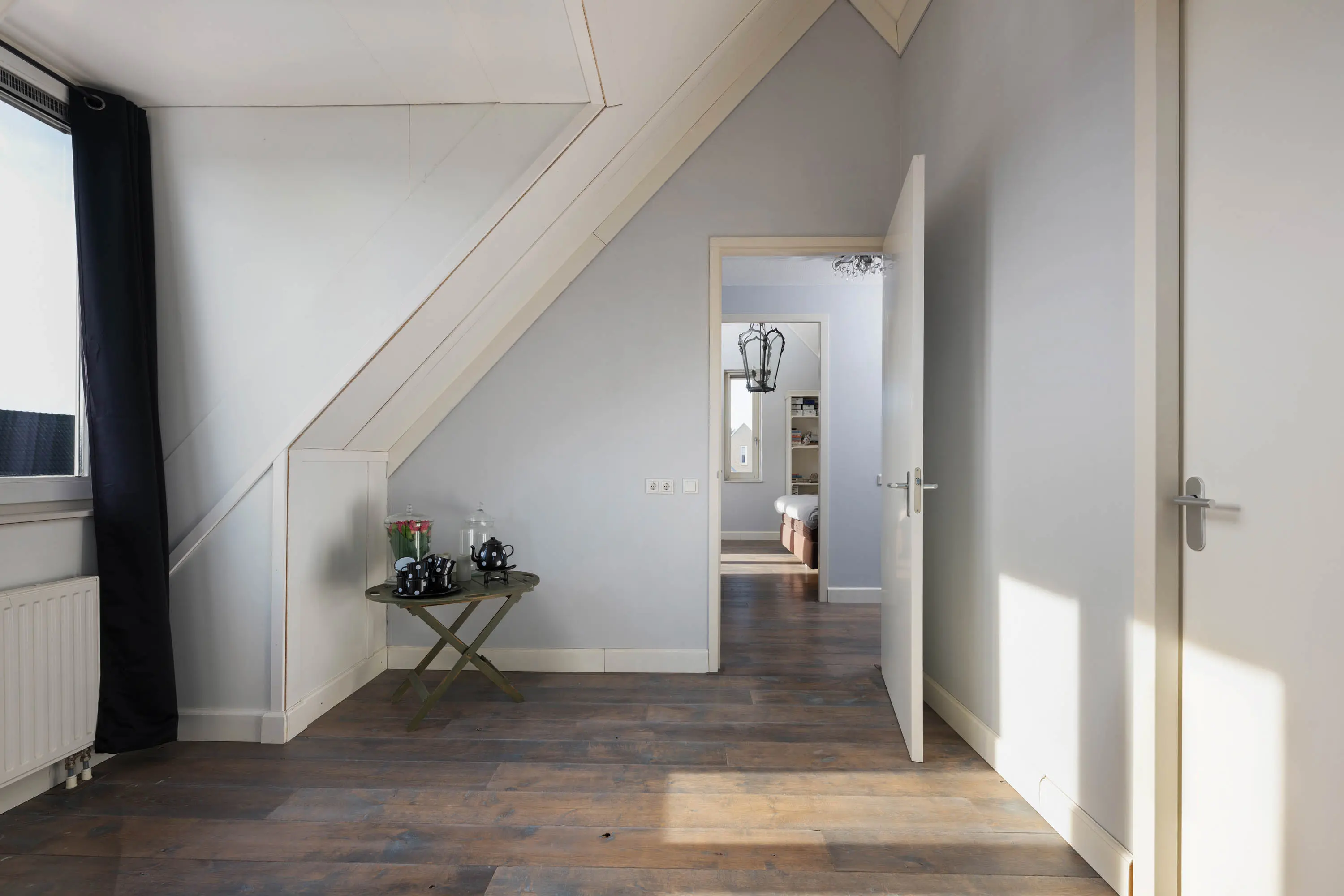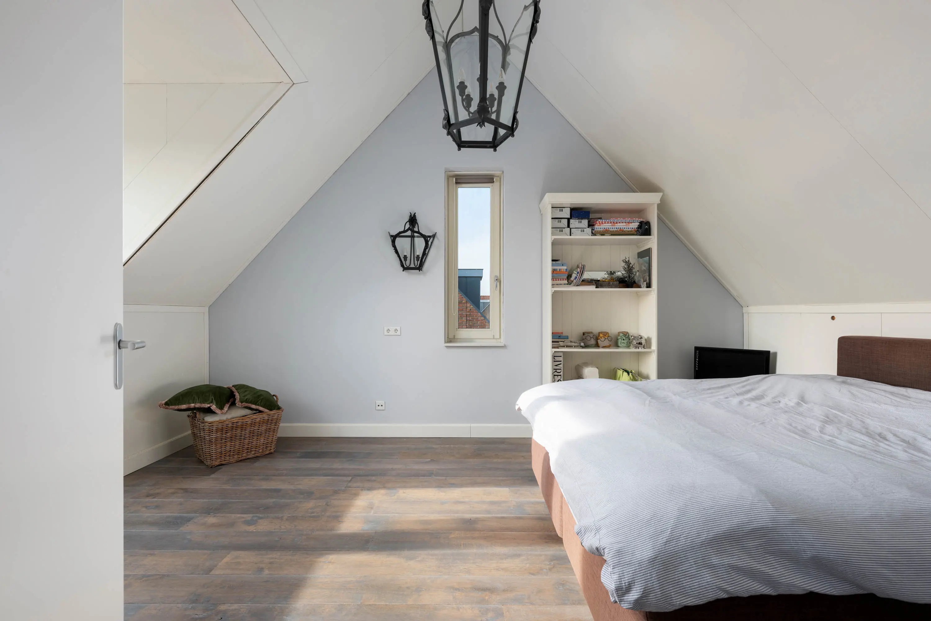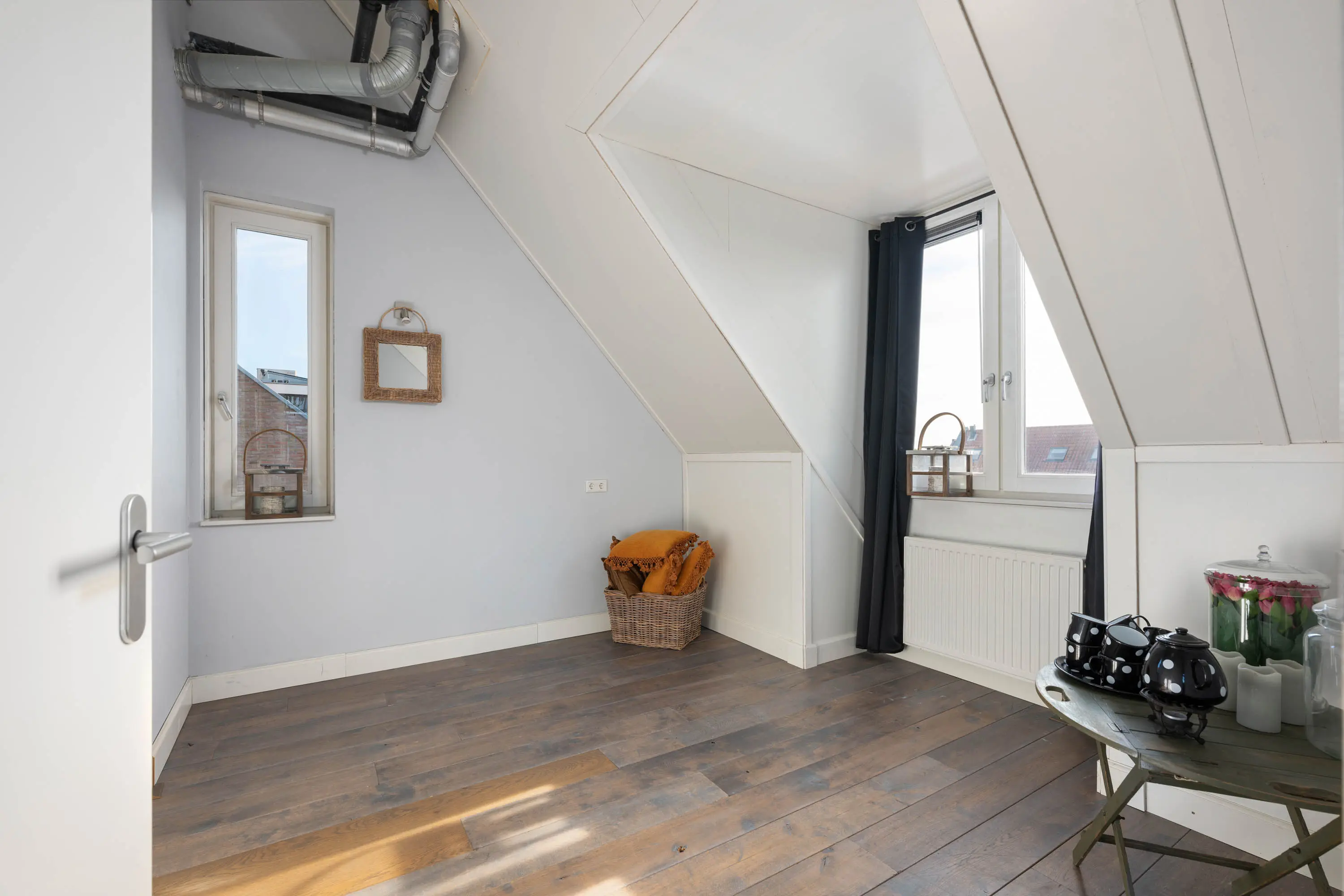 De tweede verdieping is een volwaardige woonlaag dankzij de dakkapellen en slimme indeling. Hier bevinden zich nog twee royale slaapkamers met volop lichtinval. Daarnaast is er praktische bergruimte achter de knieschotten en een technische ruimte met de CV-installatie en wasmachineaansluiting. Deze verdieping leent zich uitstekend voor een gastenverblijf, tienerkamers of hobbyruimte.