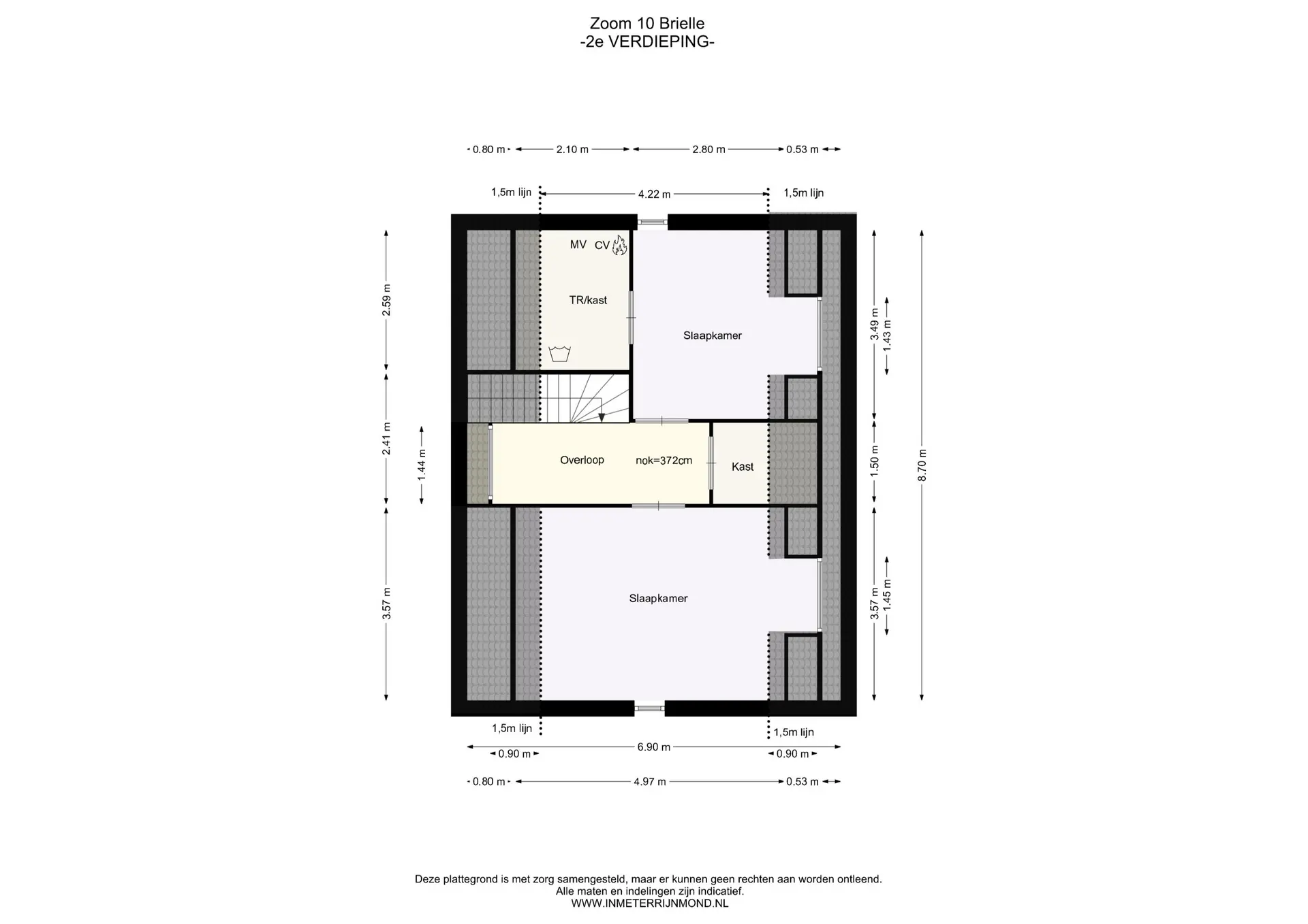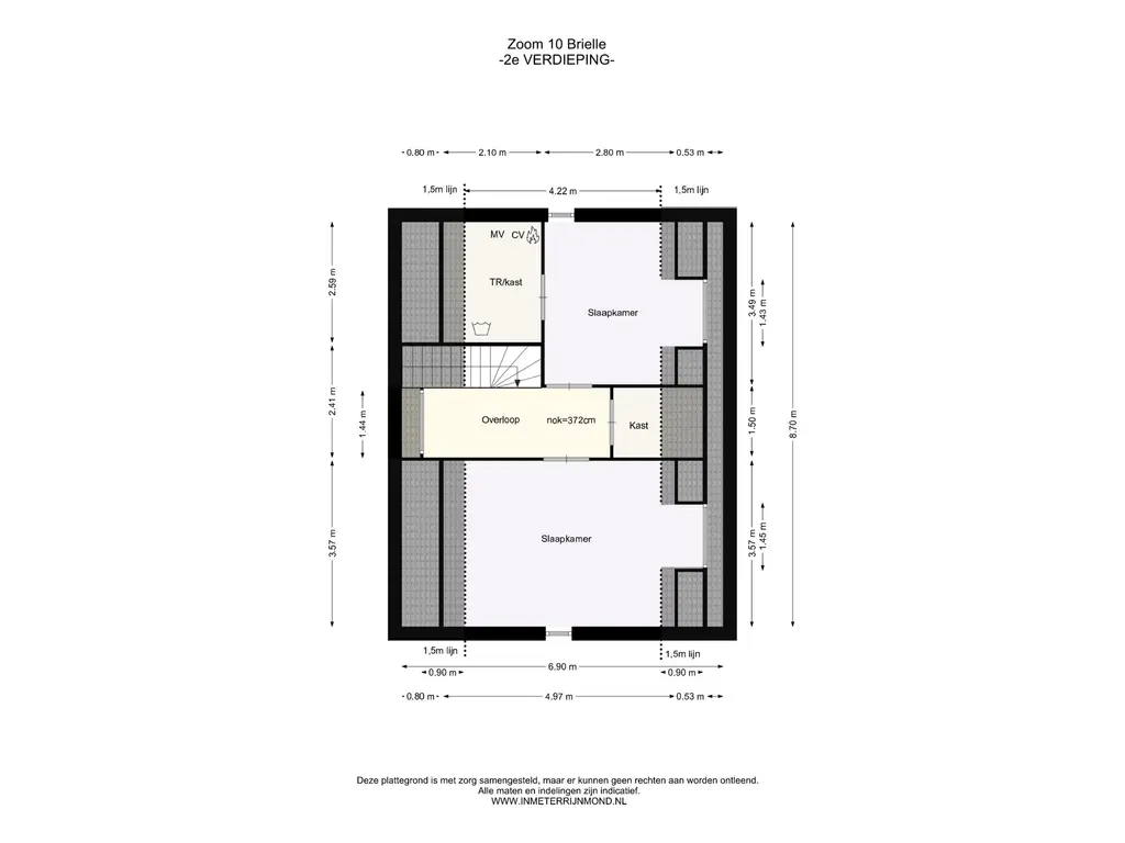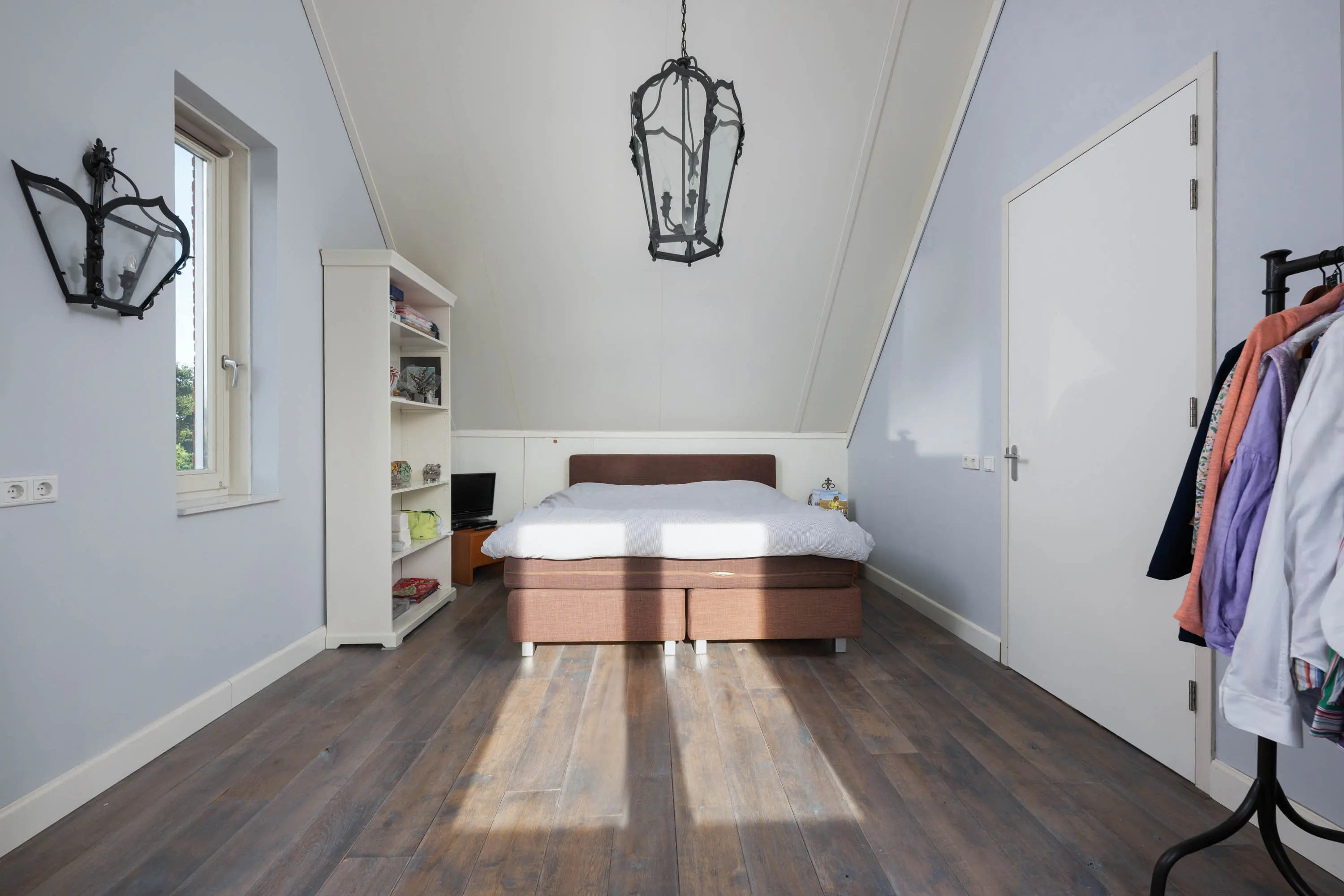 De tweede verdieping is een volwaardige woonlaag dankzij de dakkapellen en slimme indeling. Hier bevinden zich nog twee royale slaapkamers met volop lichtinval. Daarnaast is er praktische bergruimte achter de knieschotten en een technische ruimte met de CV-installatie en wasmachineaansluiting. Deze verdieping leent zich uitstekend voor een gastenverblijf, tienerkamers of hobbyruimte.